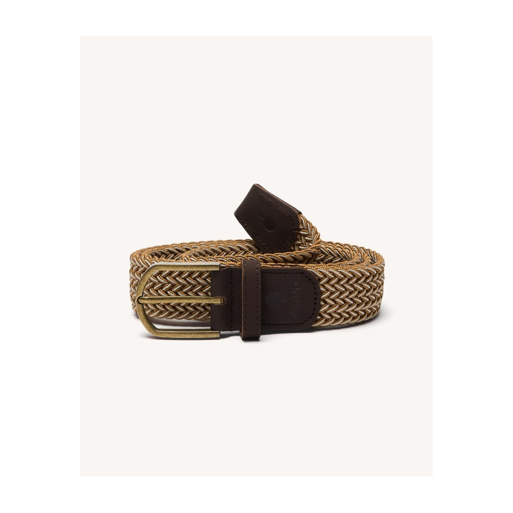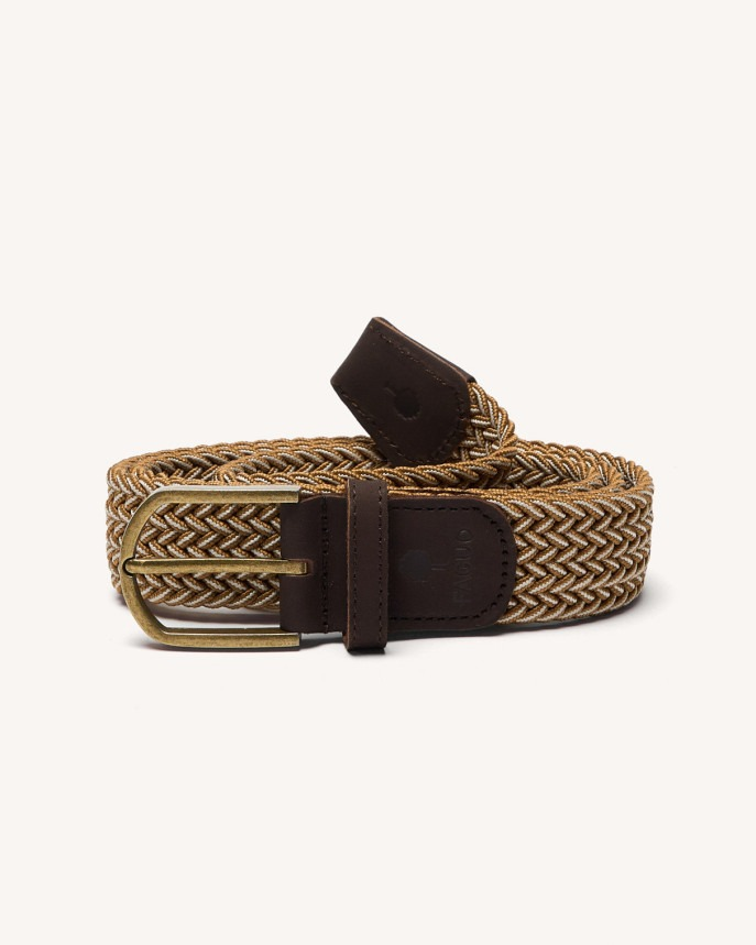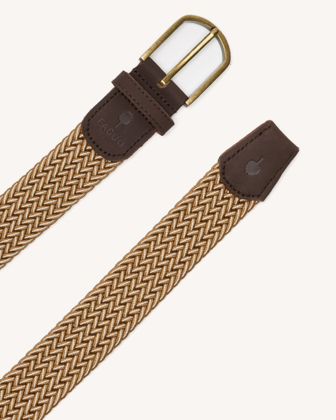 FAGUO - BELT WOVEN CEINTURE TRESSÉE HOMME CAMEL & ÉCRU TRESSAGE ÉLASTIQUE FINITIONS EN NUBUCK DE VACHETTE