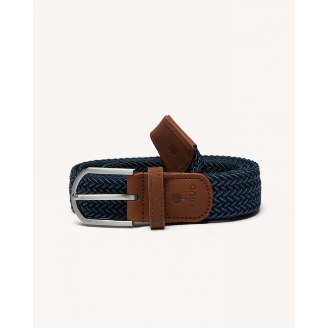 FAGUO - BELT WOVEN CEINTURE TRESSÉE HOMME BLEU FONCÉ & BLANC MATIÈRE TRESSÉE ÉLASTIQUE FINITIONS EN NUBUCK DE VACHETTE