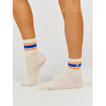 CHAUSSETTES COLORBLOCK FEMME COBALT 205. HAUTEUR MI-MOLLETS. LE PIED DE LA CHAUSSETTE EST COULEUR ÉCRU. MARQUAGE LOGO SOUS LA PLANTE DE PIED. EXISTE EN COLORIS KAKI, COBALT ET PARME.