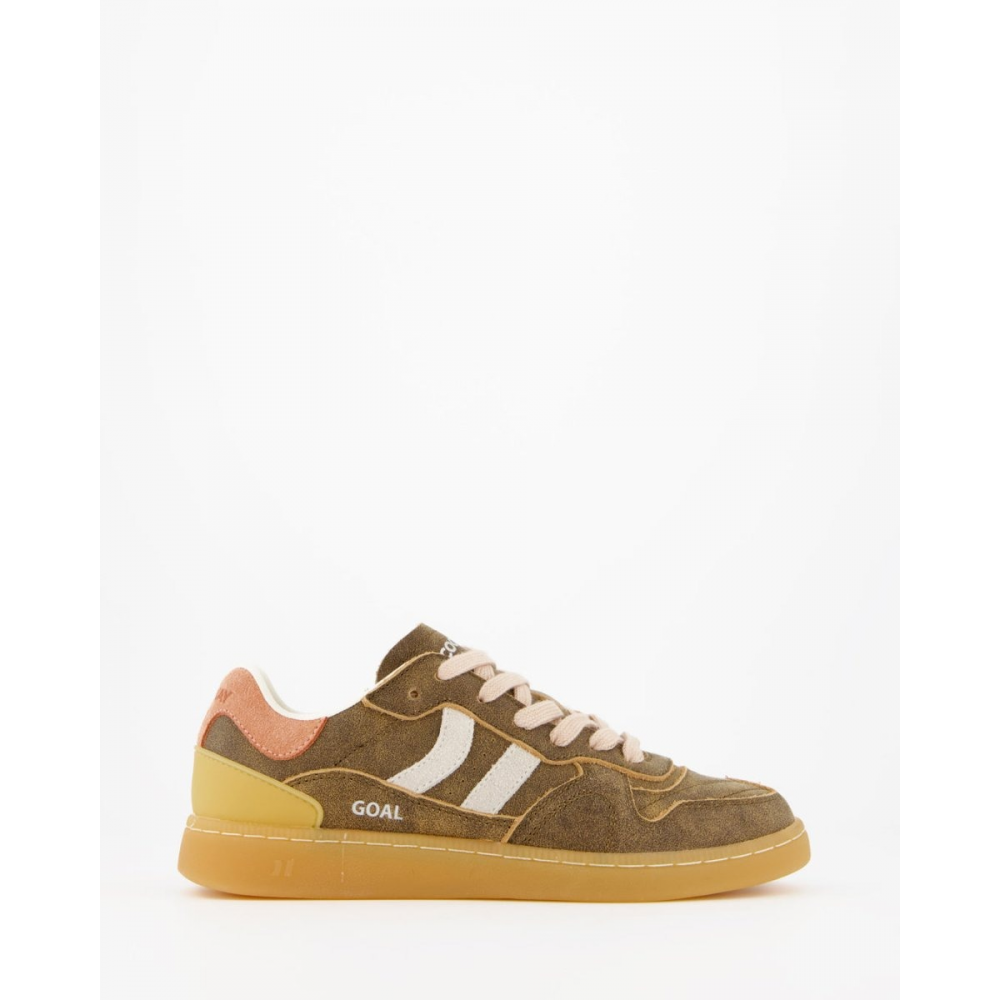 CHAUSSURE DE SPORT EN DAIM AVEC DÉTAILS DE COULEURS CONTRASTÉES. LANGUETTE EN CUIR ET PRÉFORMÉE AVEC REMBOURRAGE FIGURÉ. VUES DE LA DOUBLURE EN CUIR. LACETS PLATS INTERCHANGEABLES EN COTON BICOLORE. COL LÉGÈREMENT REMBOURRÉ. LA PARTIE AVANT EST DOTÉE D'UN RENFORT DE COUTURE. SEMELLE FLEXIBLE EN CAOUTCHOUC/CAOUTCHOUC QUI OFFRE DURABILITÉ ET ADHÉRENCE. IL PORTE LE NOM DU MODÈLE « GOAL » SUR LE CÔTÉ EN VIEIL OR.