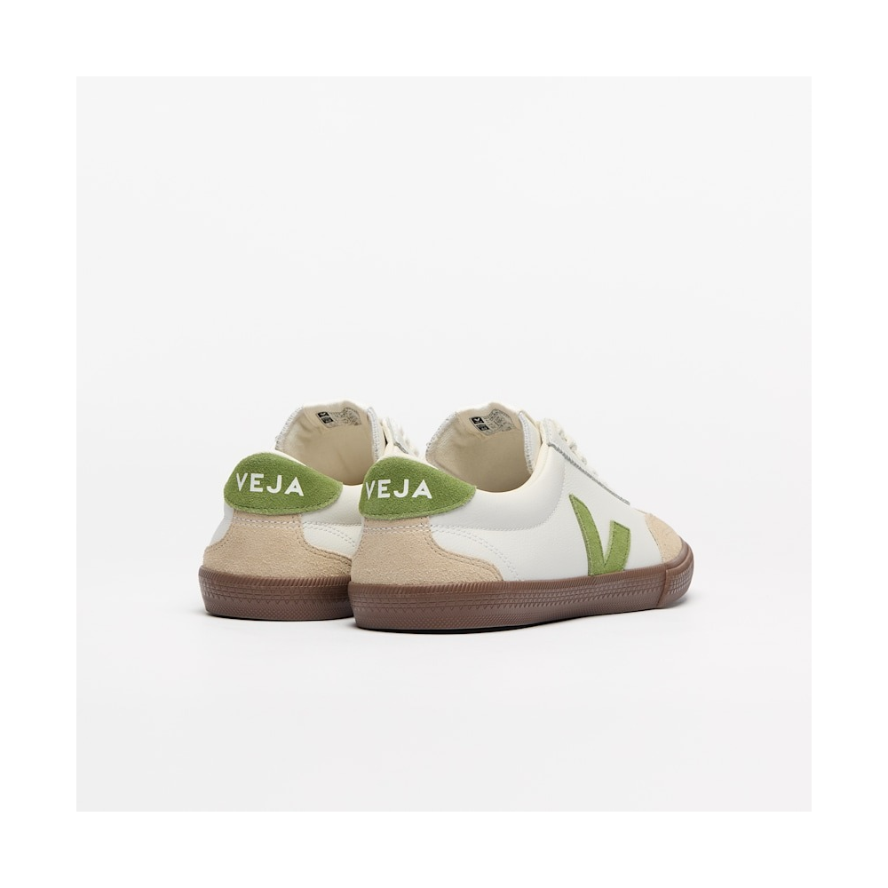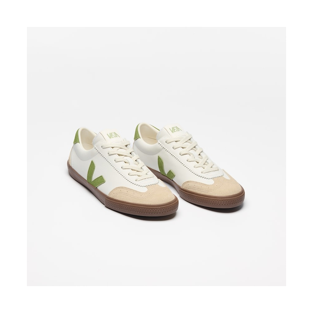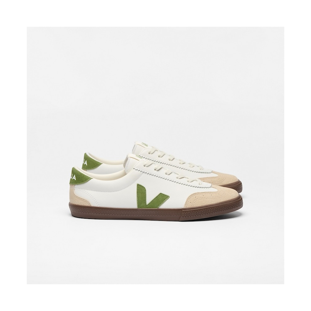 INSPIRÉE DES CHAUSSURES DE VOLLEY-BALL BRÉSILIENNES DES ANNÉES 70, VEJA LANCE UNE RÉÉDITION DE LA VOLLEY SON TOUT PREMIER MODÈLE LANCÉ EN 2005. TIGE : CUIR ORGANIC TRACED (O.T.) EMPIÈCEMENTS : CUIR ORGANIC TRACED (O.T.) ET SUÈDE SEMELLE INTÉRIEURE : CAOUTCHOUC DAMAZONIE (11%), E.V.A. BIO-SOURCÉ (45%, DONT 36% CANNE À SUCRE), E.V.A. RECYCLÉ (13%), COTON BIOLOGIQUE (5%) ET AUTRES (26%) SEMELLE EXTÉRIEURE : CAOUTCHOUC D'AMAZONIE (40%), SILICE MINÉRALE (23%), CAOUTCHOUC RECYCLÉ (10%), CAOUTCHOUC SYNTHÉTIQUE (11%) ET AUTRES (16%) DOUBLURE : POLYESTER RECYCLÉ (100%) LACETS : COTON BIOLOGIQUE (100%) FABRIQUÉ AU BRÉSIL