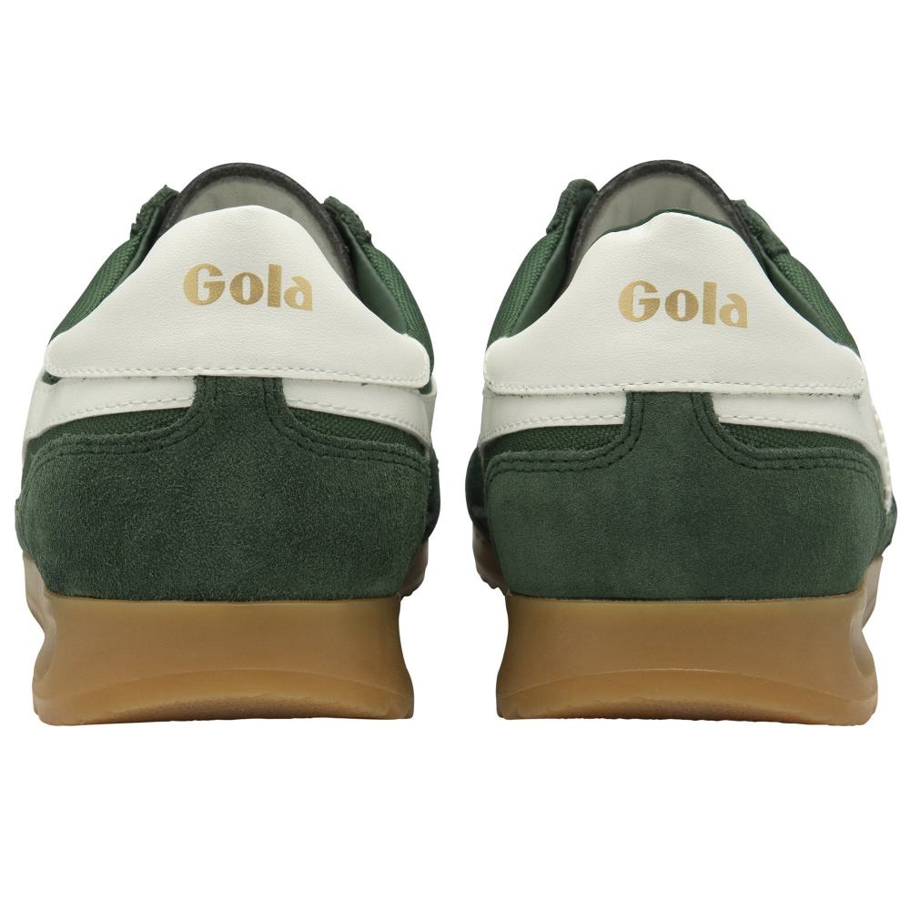 LES BASKETS MASCULINES INSPIRÉES DES TERRASSES RESTENT TOUJOURS UN INCONTOURNABLE DE LA MODE. LA TORNADO, NOUVELLE VENUE QUI FAIT SENSATION CETTE SAISON, EST UNE VERSION REVISITÉE DE LA GOLA DE 1985. ELLE SE DISTINGUE PAR SA SEMELLE COMPENSÉE EN GOMME, SA TIGE EN NYLON TISSÉ ÉPAIS VERT SAPIN, SES EMPIÈCEMENTS EN DAIM AU NIVEAU DES ORTEILS, DU TALON ET DES CÔTÉS, ET LE LOGO GOLA BLANC EN DENTS DE SCIE QUI CONTRASTE AVEC LE RESTE DU MODÈLE. BASKETS RÉTRO GOLA BASKETS EN NYLON POUR HOMMES BASKETS À LACETS DESIGN ORIGINAL DES ANNÉES 80 BASKETS À SEMELLE EN GOMME