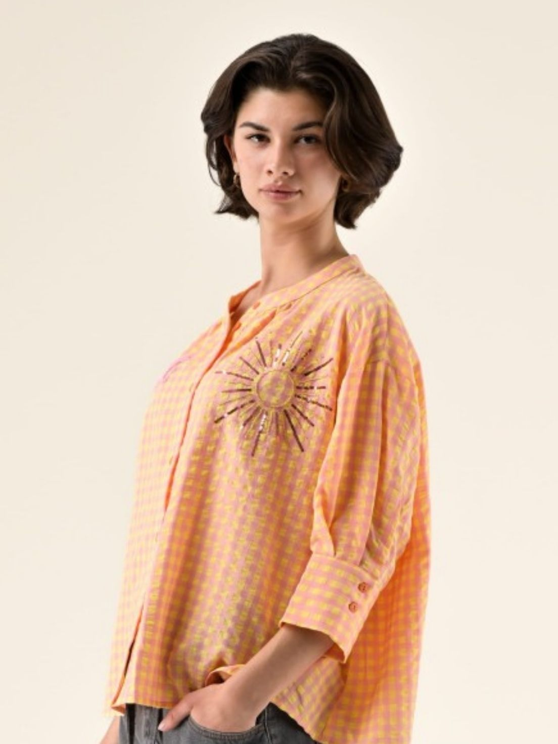 SKU 7-34785_VICHY ROSE JAUNE_M/L Catégorie CHEMISES & BLOUSES