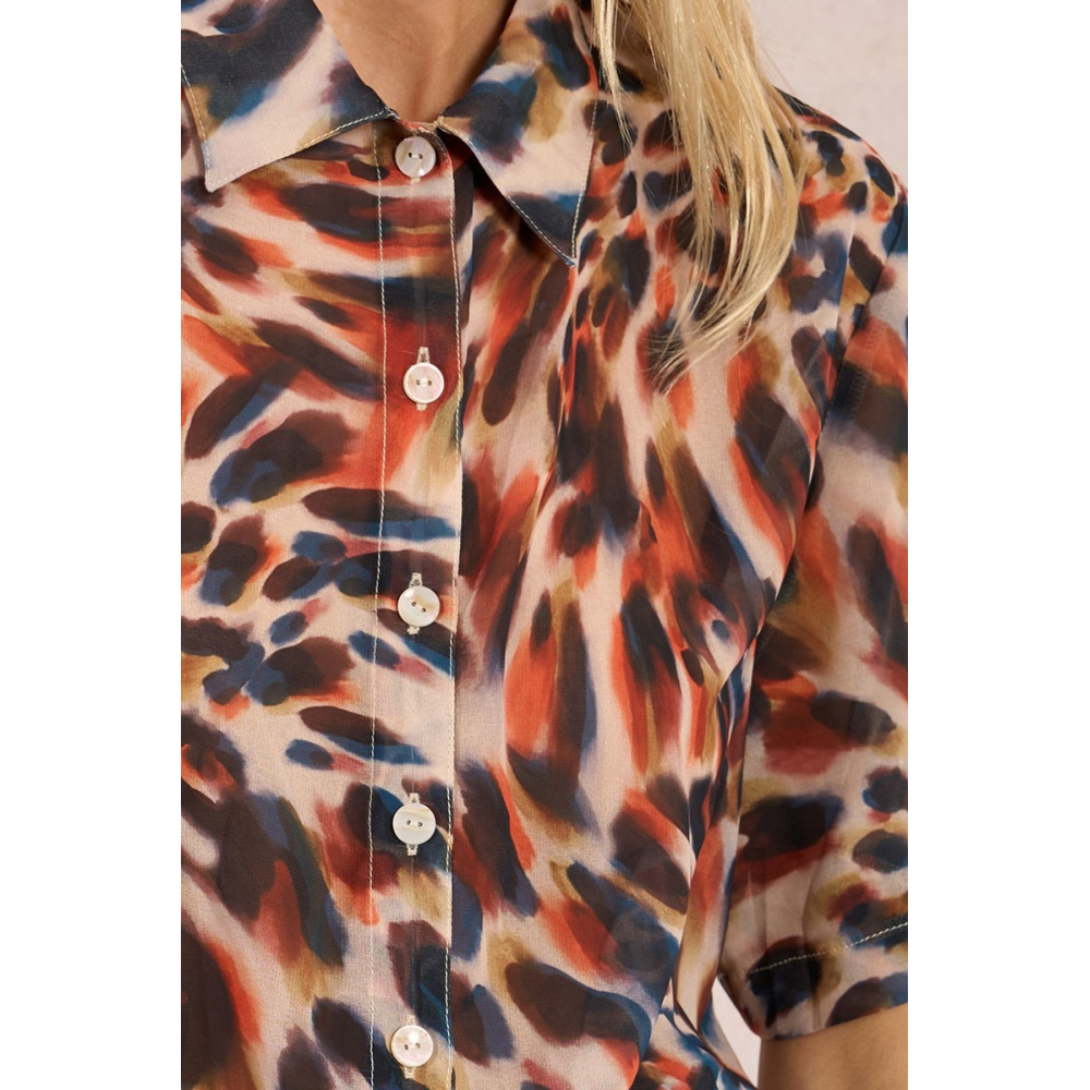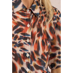 CHEMISIER À IMPRIMÉ ANIMALIER -MANCHES MI-LONGUES -COL CHEMISE -SEMI-TRANSPARENCE -FERMETURE PAR BOUTONS TOUTE LA LONGUEUR DEVANT -LONGUEUR DEPUIS L'ÉPAULE 65CM POUR UNE TAILLE S