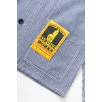 CHEMISE DE CORVÉE CLASSIQUE EN HICKORY COUPE RÉGULIÈRE FABRIQUÉ AVEC DU COTON BIOLOGIQUE GOTS CONSTRUCTION À 3 POCHES FERMETURE À 5 BOUTONS ÉTIQUETTE TISSÉE