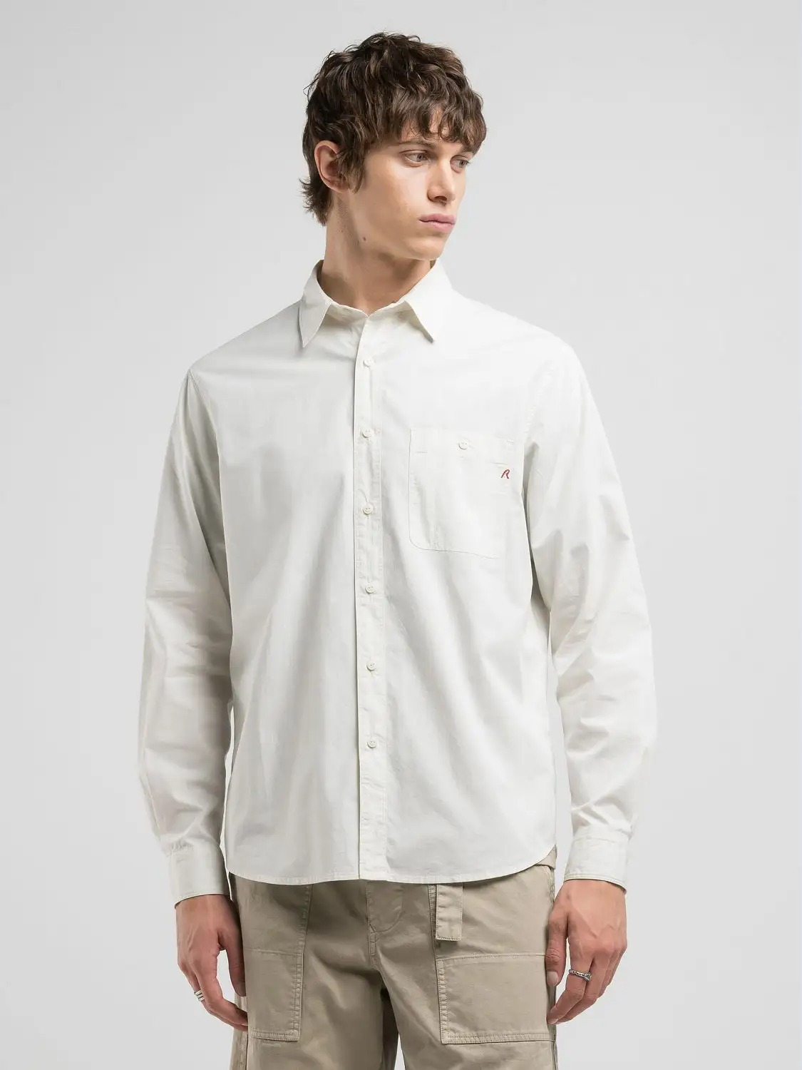 CHEMISE À LA COUPE REGULAR, FABRIQUÉE EN FRAÎCHE POPELINE DE COTON POUR UNE IMMÉDIATE SENSATION DE CONFORT SUR LA PEAU. CE MODÈLE ÀMANCHES LONGUES EST DOTÉ D'UN OURLET ARRONDI ET D'UNE POCHE POITRINE ORNÉE DE NOTRE INCONTOURNABLE R BRODÉ EXPRIMANT L'ADN DE REPLAY. FERMETURE FRONTALE PAR BOUTONS. 100%COTON,