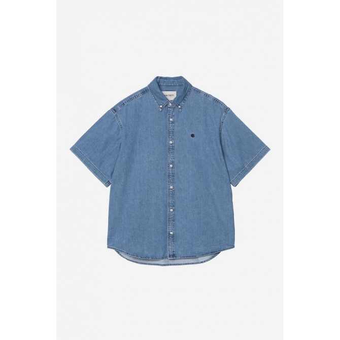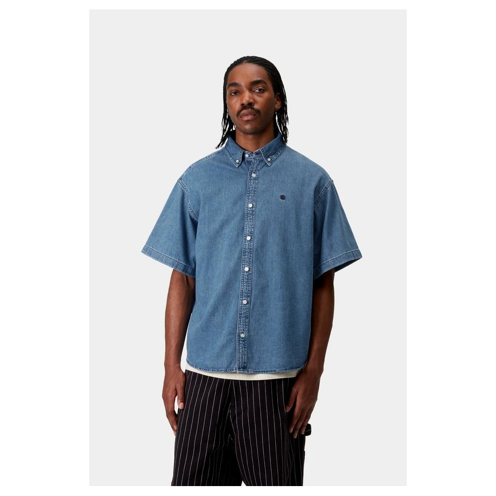 LA CHEMISE À MANCHES COURTES 'LUCAS' EST CONFECTIONNÉE EN DENIM DE COTON SEMI-ÉPAIS. DE COUPE LOOSE, LE LOGO 'C' EST BRODÉ À L'AVANT.