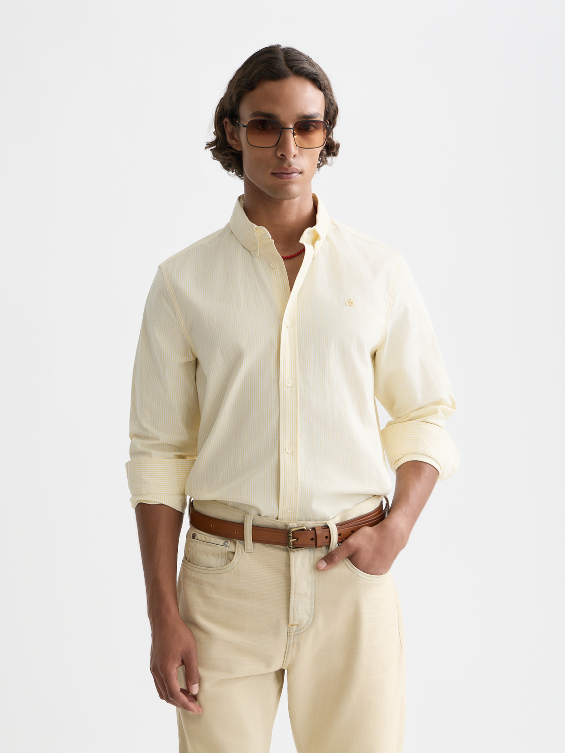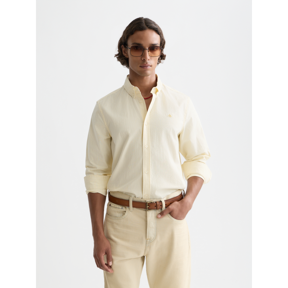 INTEMPOREL, CE MODÈLE OXFORD À COUPE CLASSIQUE ET À RAYURES DISCRÈTES EST UNE EXCLUSIVITÉ SAISONNIÈRE. DÉTAILS 98 % COTON, 2 % ÉLASTHANNE LAVAGE EN MACHINE : 30 °C NORMAL DJAIRO PORTE UNE TAILLE M ET MESURE 184 CM.