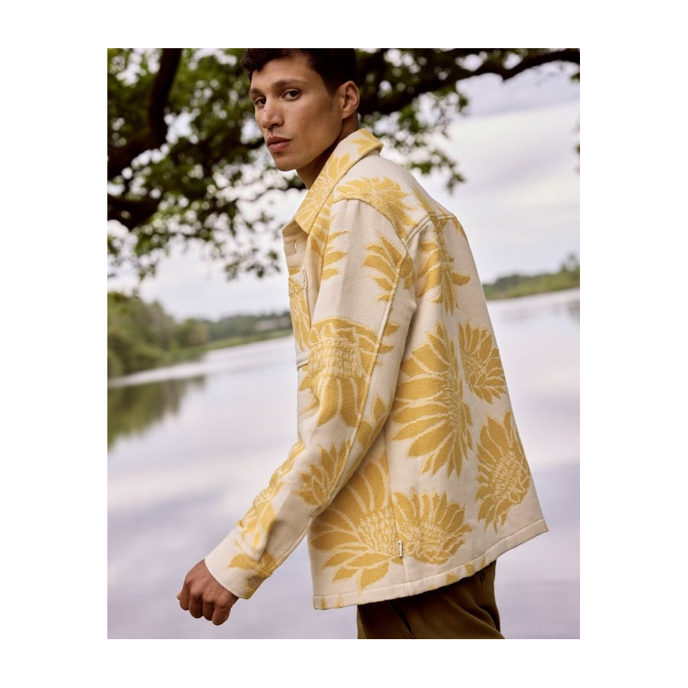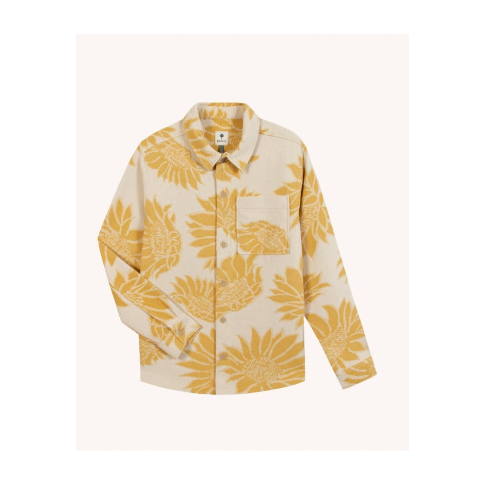 FAGUO - GASTINE SHIRT WOVEN SURCHEMISE HOMME CRÈME ET JAUNE COUPE OVERSIZE CRÉE UNE SILHOUETTE AMPLE PORTÉE OUVERTE OU FERMÉE