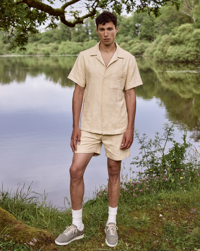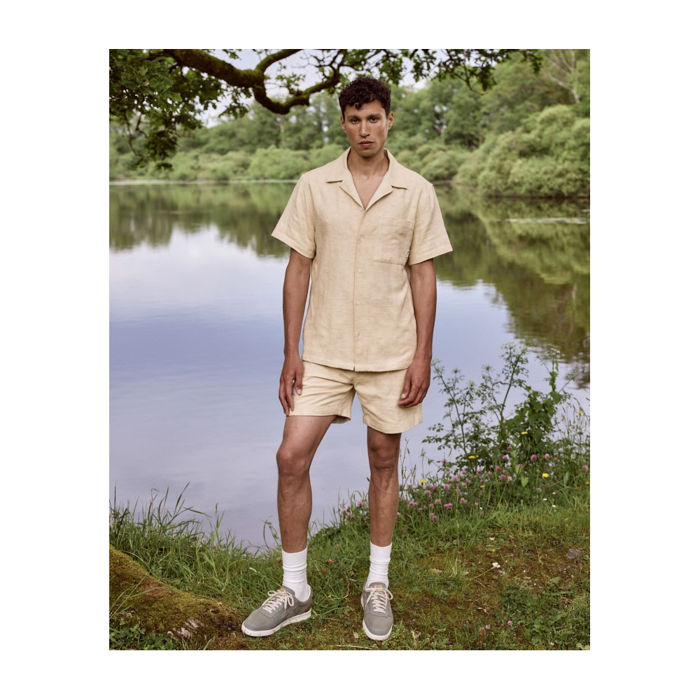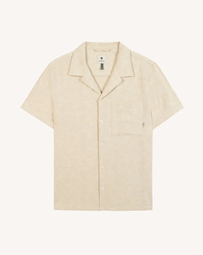 FAGUO - PAIOLIVE SHIRT WOVEN CHEMISE MANCHES COURTES HOMME ÉCRUE MATIÈRE JACQUARD COUPE DROITE LÉGÈREMENT AMPLE