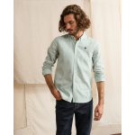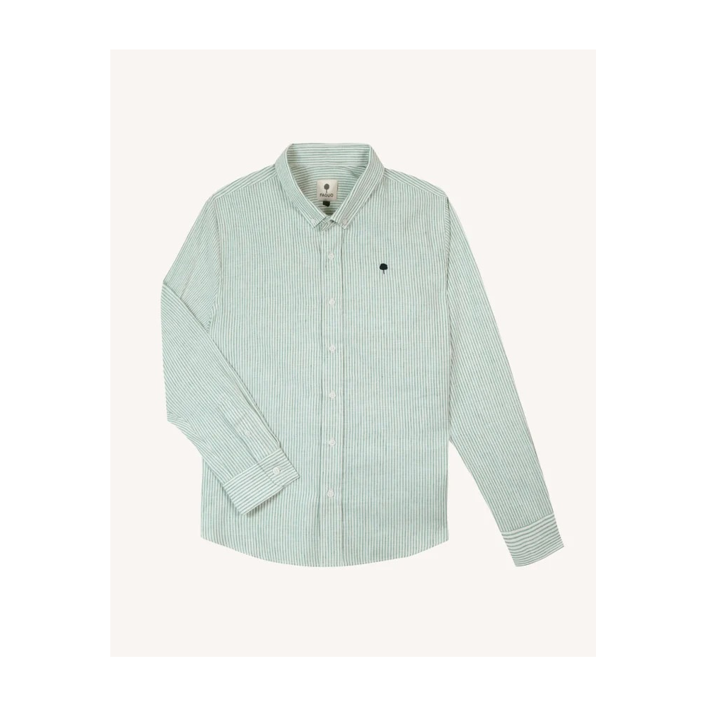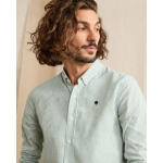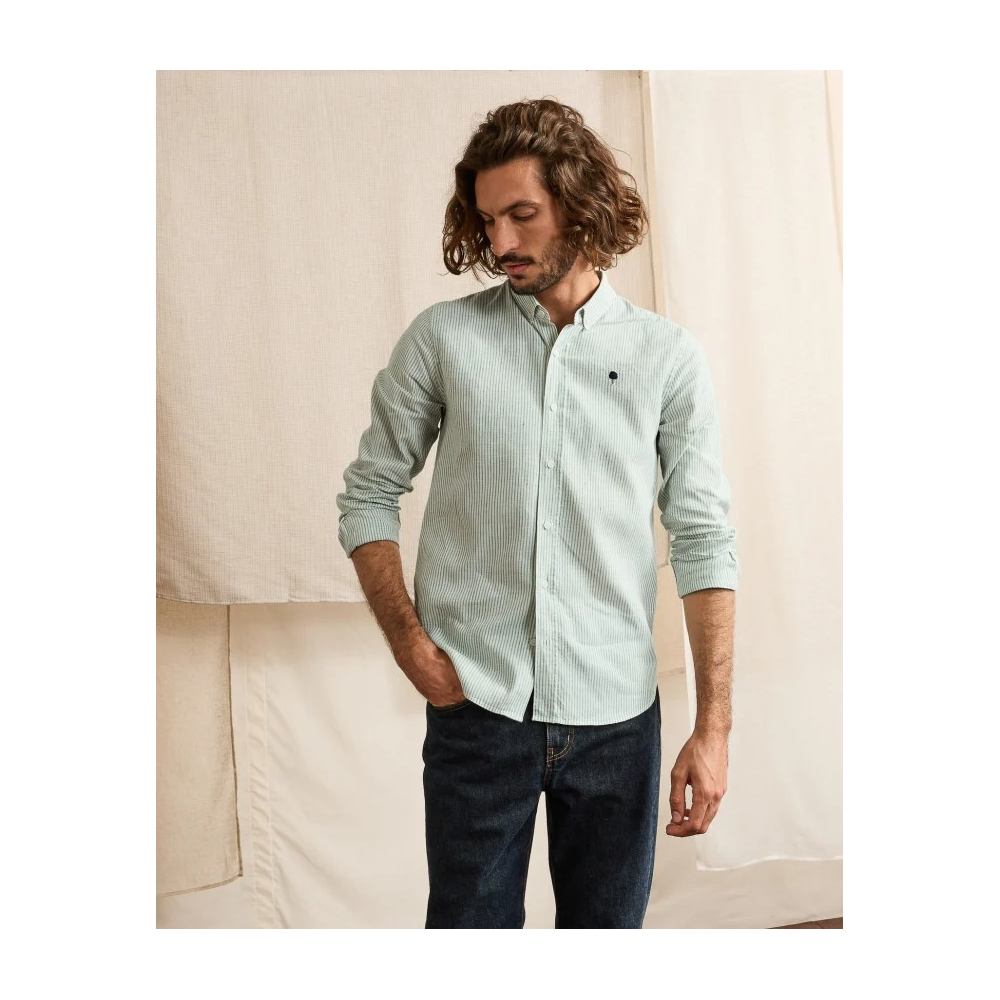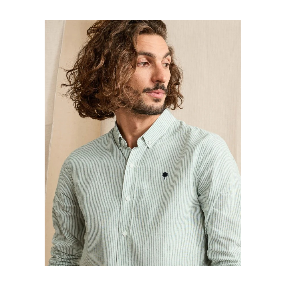 * CHEMISE IVOY VERT FONCÉ ET ÉCRU À RAYURES, IDÉALE POUR LÉTÉ. * TOILE EN COTON ET LIN, LÉGÈRE ET AGRÉABLE PAR TEMPS CHAUD. * COUPE DROITE POUR UN PORTÉ CONFORTABLE ET POLYVALENT. * COL BOUTONNÉ POUR UNE ALLURE SOIGNÉE. * SE PORTE SEULE OU OUVERTE SUR UN T-SHIRT. * BRODERIE ARBRE FAGUO POUR UNE SIGNATURE DISCRÈTE.