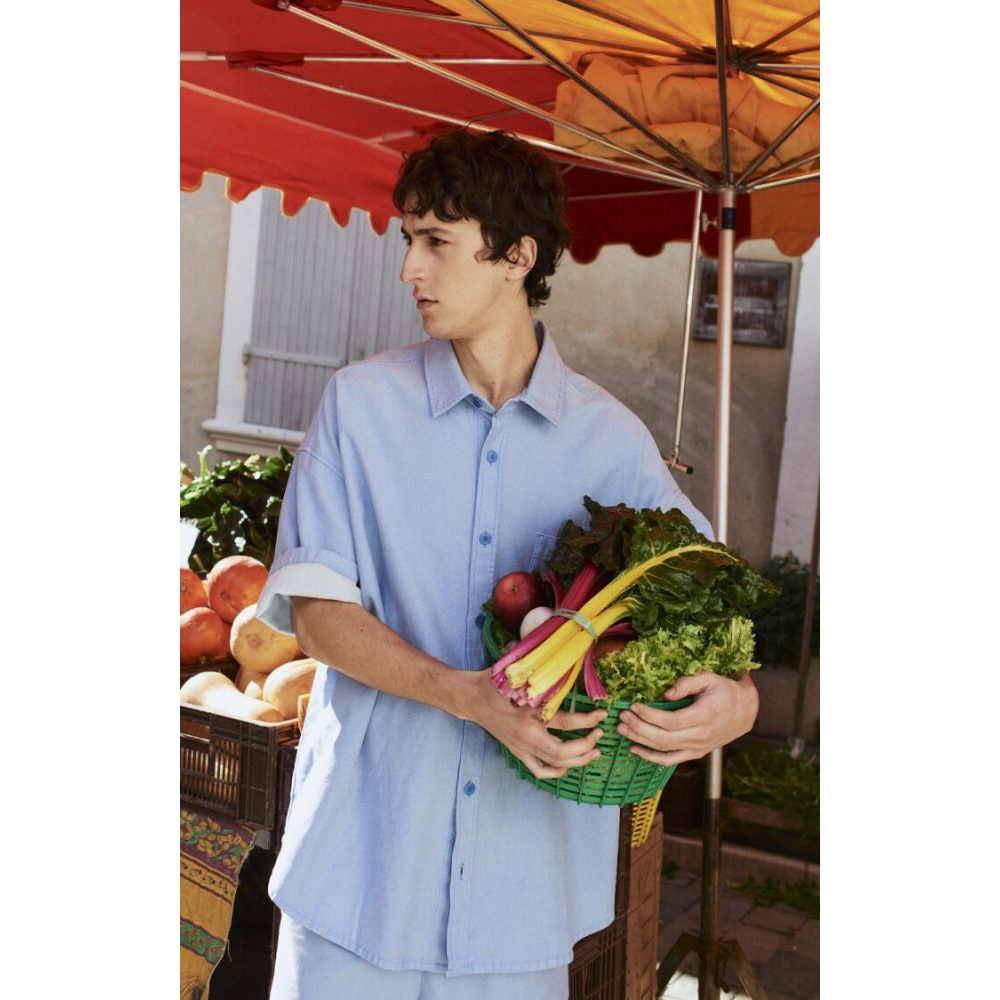 CHEMISE MANCHES COURTES COUPE AMPLE COL CLASSIQUE FERMETURE PAR BOUTONNIÈRE UNE POCHE PLAQUÉE SUR LA POITRINE OVERSIZE. SE PORTE AMPLE, PRENDRE VOTRE TAILLE HABITUELLE.