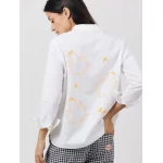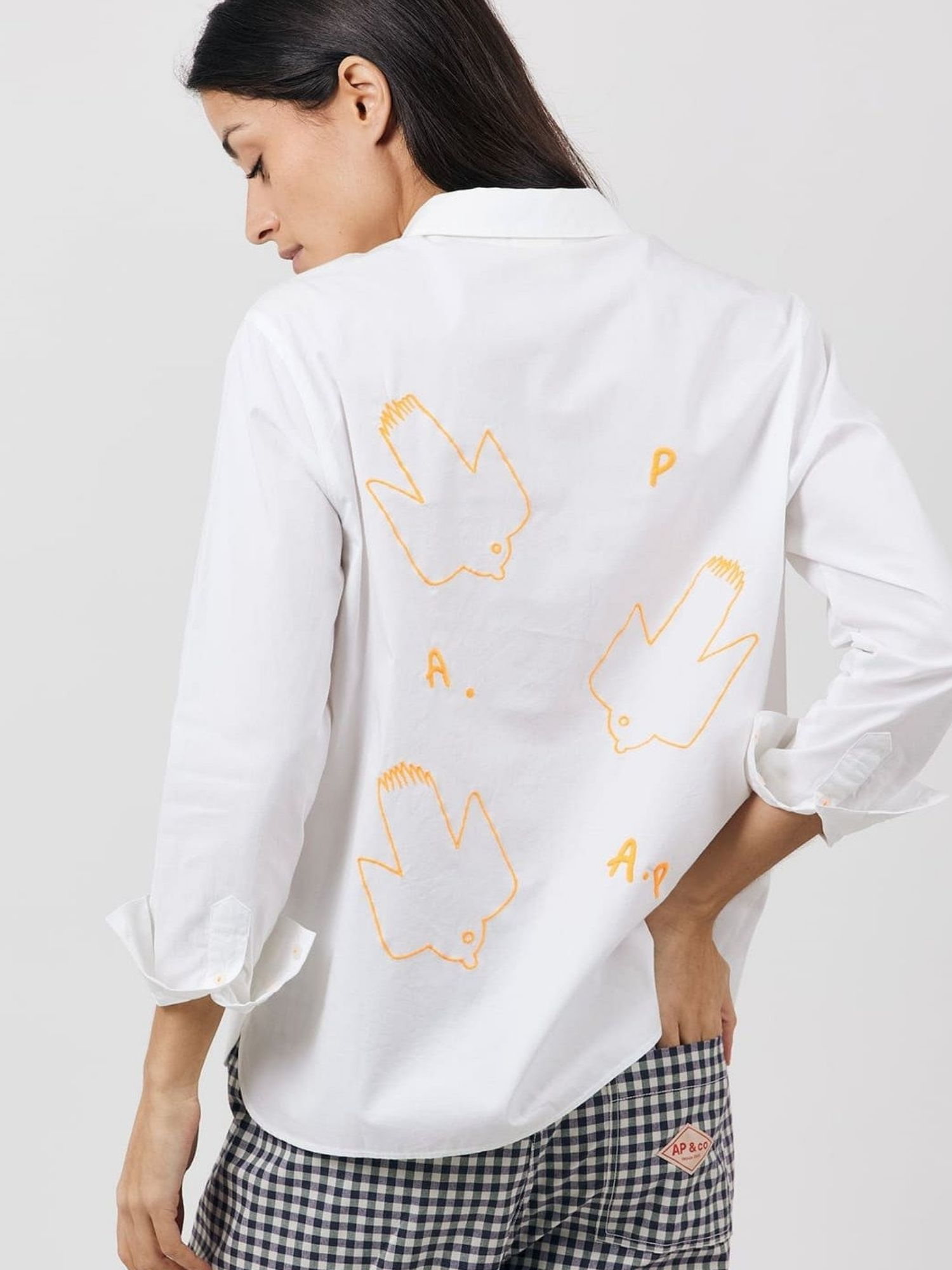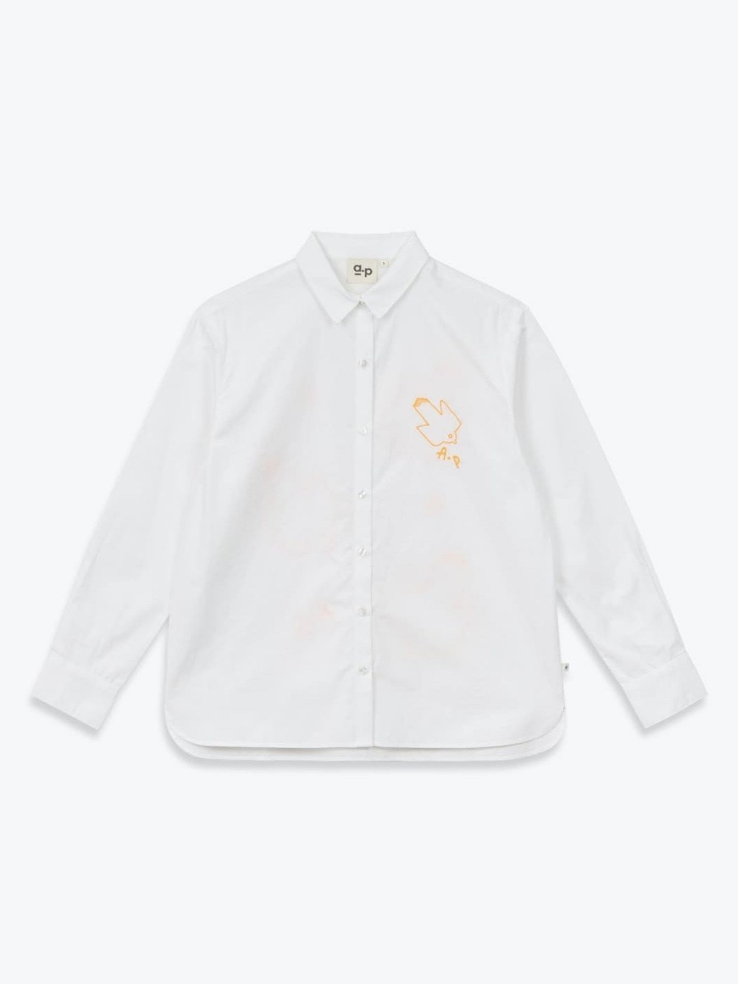 ARSENE ET LES PIPELETTES - BLOUSE BRODERIE OISEAUX MANCHES LONGUES AVEC POIGNETS. COL CHEMISE. OUVERTURE BOUTONNÉE AU DEVANT. BRODERIE ""OISEAU"" À LA POITRINE ET DANS LE DOS. BAS DE VÊTEMENT ARRONDI ET FENDU AUX CÔTÉS. DOS PLUS LONG QUE LE DEVANT. ÉTIQUETTE POINT BLEU INSÉRÉE DANS LA COUTURE CÔTÉ. THÉRÈSE MESURE 1M78 ET PORTE UNE TAILLE S. 100% COTON TISSÉ EN POPELINE DE COTON.