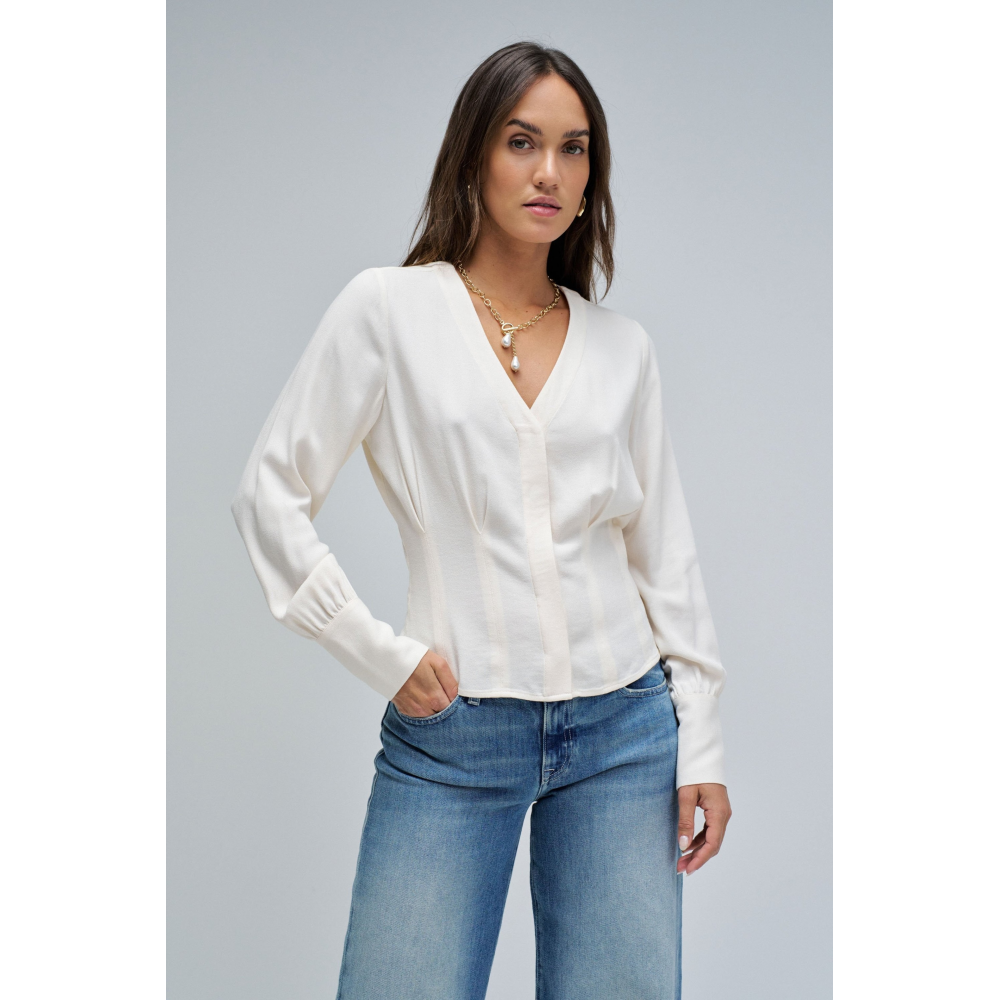 CE CHEMISIER STYLE CORSET, EN TON PERLE, PRÉSENTE UNE COUPE SLIM QUI MOULE ET MET EN VALEUR LA SILHOUETTE. L'ENCOLURE EN V ET LE DÉTAIL DES PINCES À LA TAILLE OFFRENT UNE COUPE IMPECCABLE, TANDIS QUE LES MANCHES LONGUES AVEC BOUTONS AJOUTENT UNE TOUCHE CLASSIQUE. L'OUVERTURE FRONTALE AVEC DES BOUTONS CACHÉS COMPLÈTE LE DESIGN AVEC SOPHISTICATION. POUR RÉFÉRENCE, LE MANNEQUIN MESURE 1,74 M ET PORTE UNE TAILLE S. MATIÈRES PRINCIPALES 100% VISCOSE