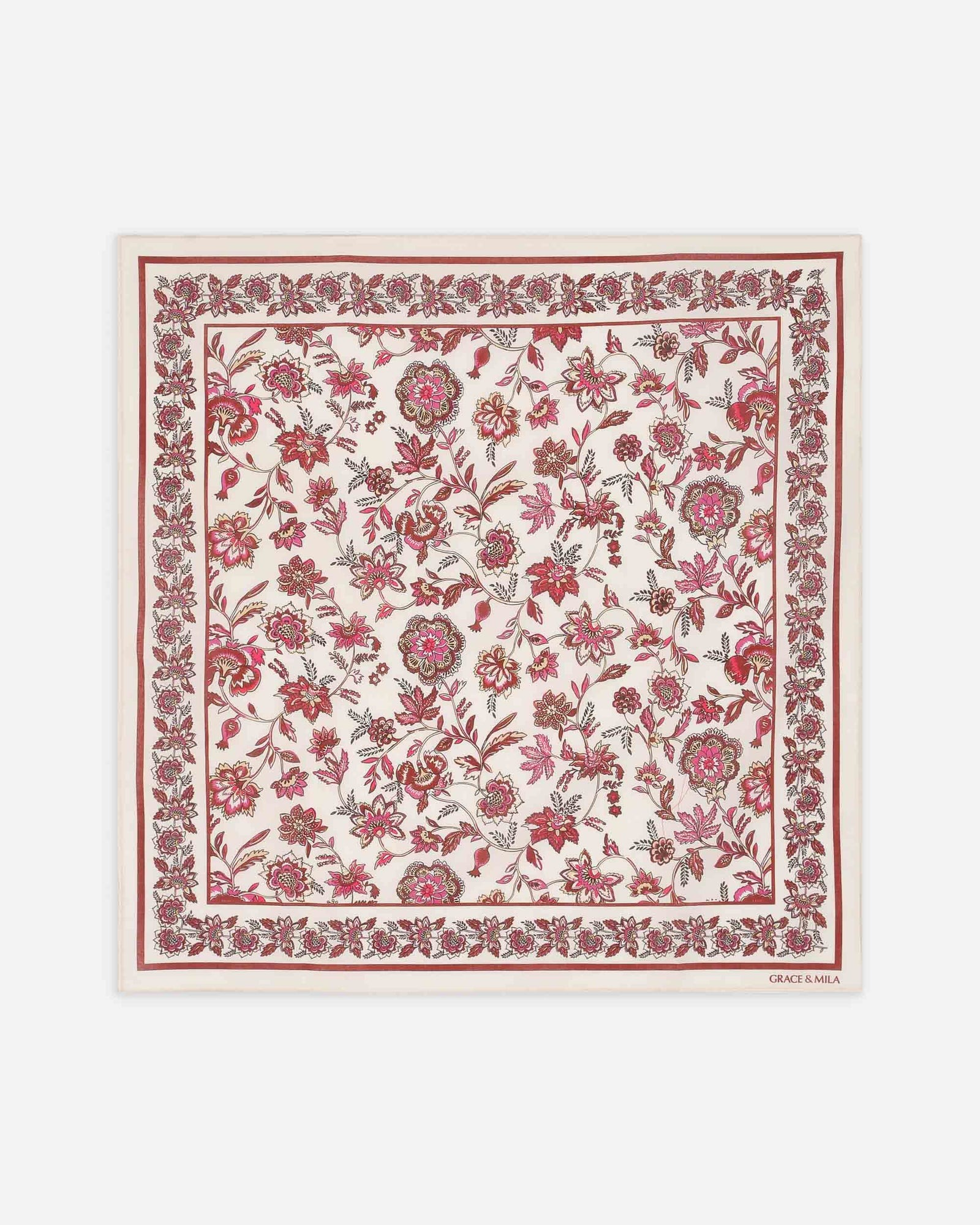 FÉMININ ET RAFFINÉ, LE FOULARD CARRÉ VERLISSE COMPLÈTE NOTRE GAMME D'ACCESSOIRES GRACE & MILA. CETTE PIÈCE MODE EST CONFECTIONNÉE DANS UN TISSU IMPRIMÉ À FLEURS. EN 100 % COTON, LE FOULARD À FLEURS VERLISSE REJOINT NOTRE COLLECTION EN FIBRES NATURELLES « UN BRIN DE VERT ».