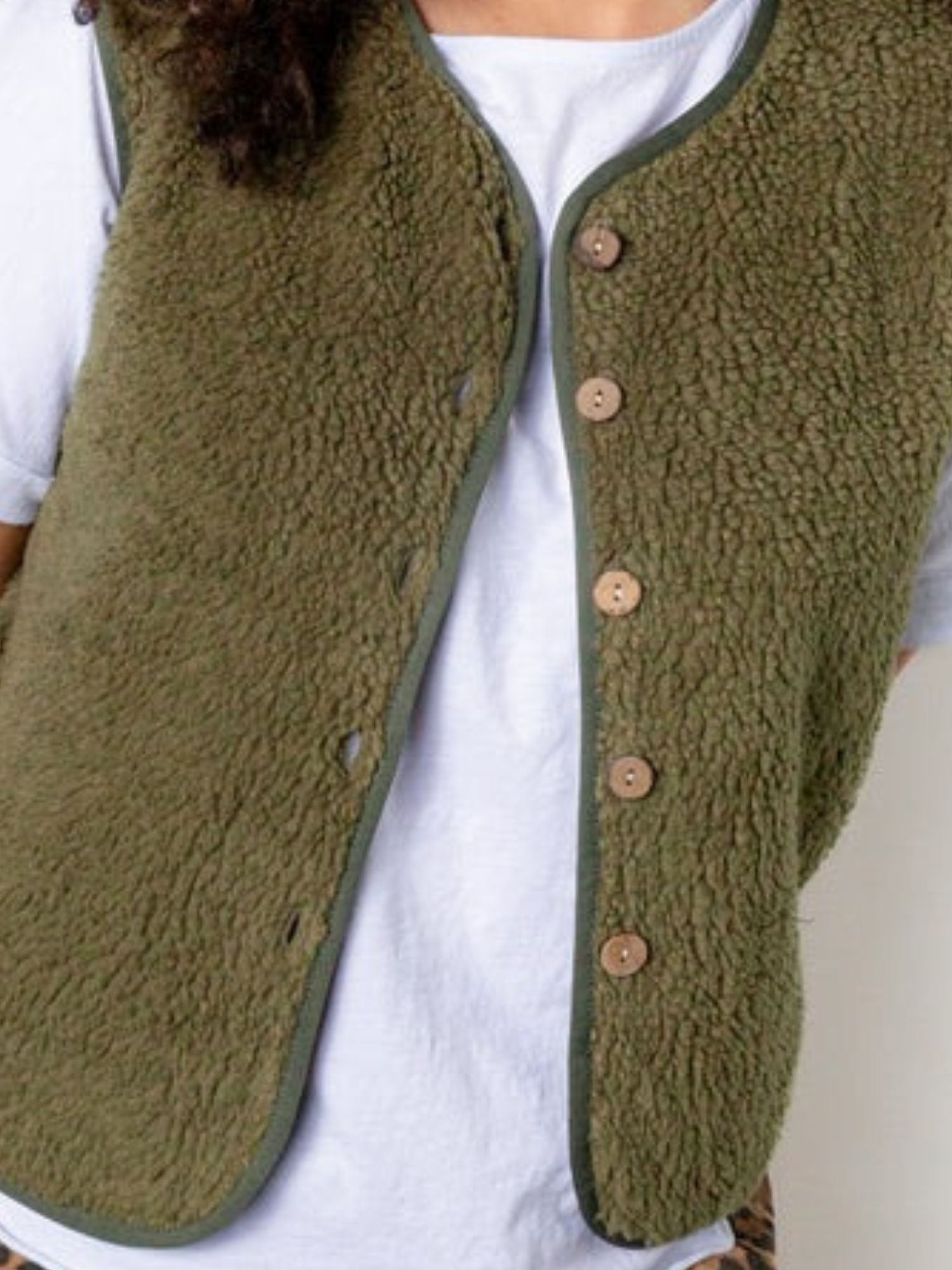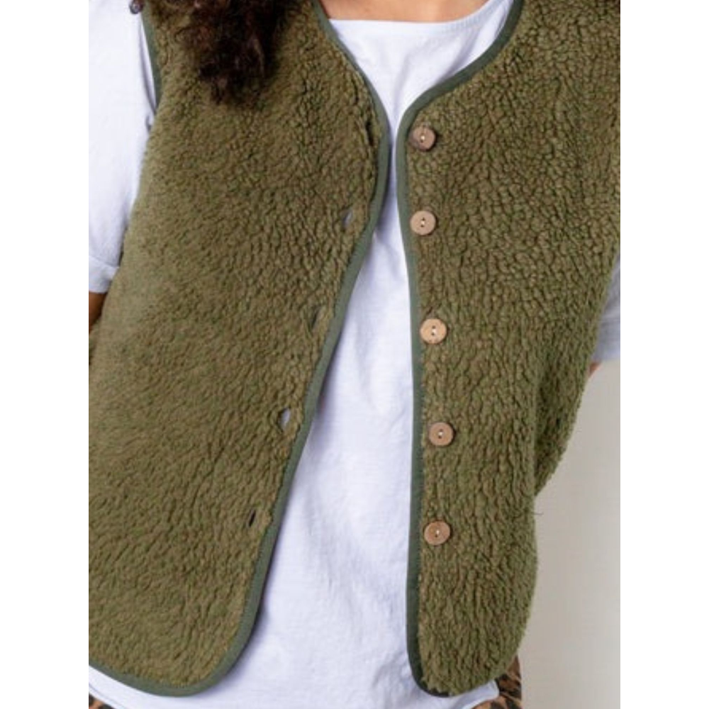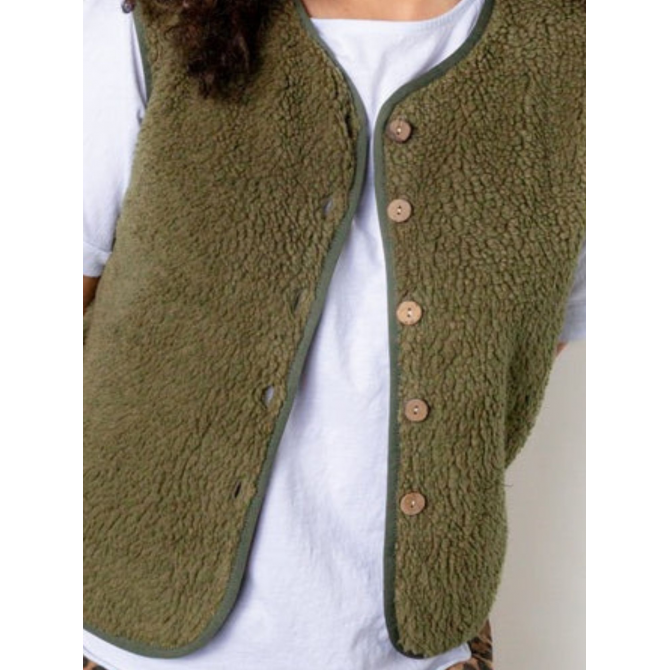 GILET MOUMOUTE SANS MANCHES COUPE DROITE PATTE DE BOUTONNAGE BOUTONS EN BOIS TAILLE UNIQUE CONFECTIONNÉ EN ITALIE