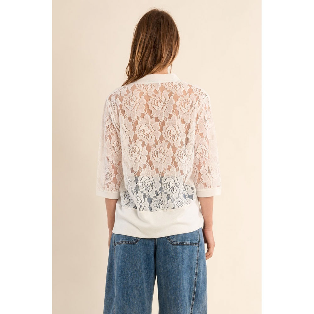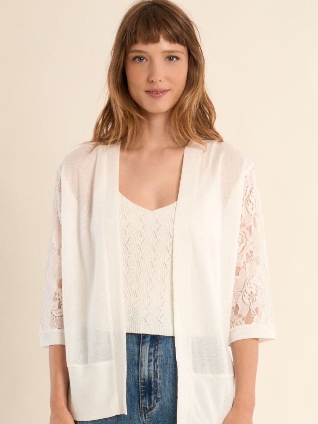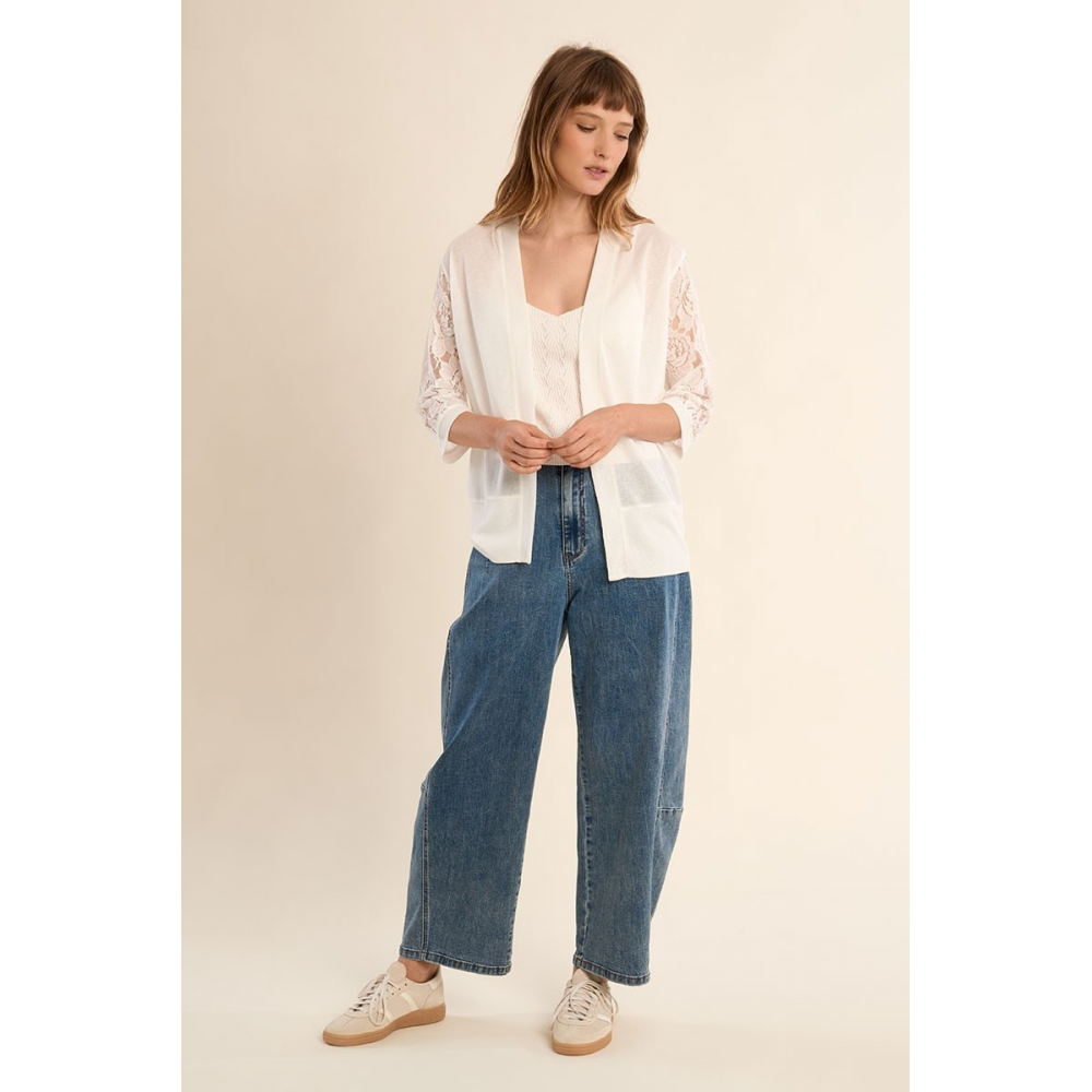 MOLLY BRACKEN - CARDIGAN GILET MANCHES DENTELLES, MI-LONGUES SEMI-TRANSPARENCE SANS FERMETURE