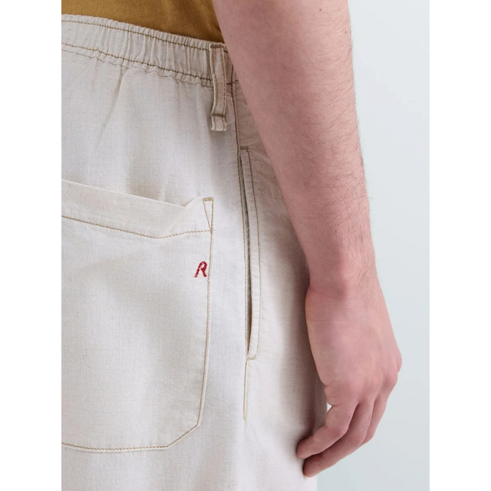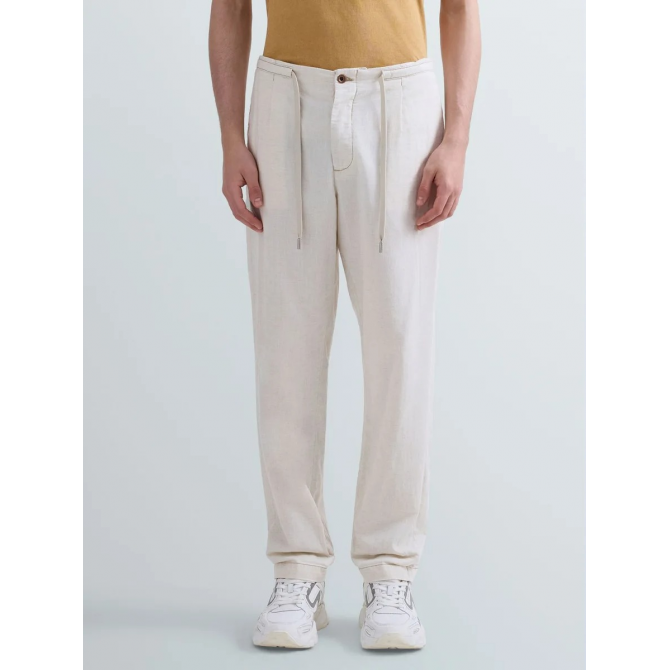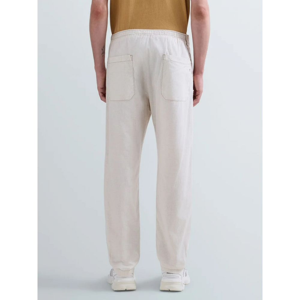* PANTALON COUPE FUSELEE TAILLE REGULAR * DENIM LEGER MELANGE LIN COTON ET LYOCELL (5 OZ) * LAVAGE RINCE ET SECHAGE SUR MANNEQUIN * TAILLE ELASTIQUEE AVEC CORDON DE SERRAGE * POCHES LATERALES PASSEPOILEES ET POCHES ARRIERE PLAQUEES * DETAIL R BRODE ET PINCES SUR LE DEVANT