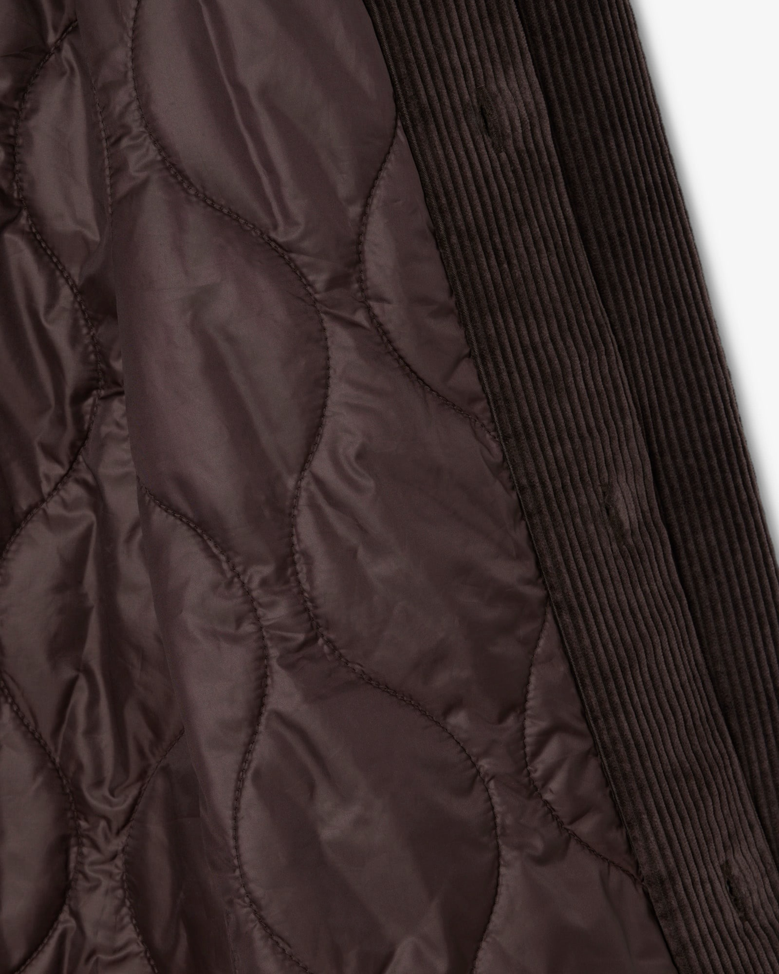 LE VELOURS CÔTELÉ ÉPAIS DE CETTE SURCHEMISE, ALLIÉ À UN REMBOURRAGE LÉGER, OFFRE CHALEUR ET CONFORT PENDANT LHIVER. SA COUPE LÉGÈREMENT OVERSIZE GARANTIT UNE SILHOUETTE DÉCONTRACTÉE. LE MOTIF TRACÉ PAR LES SURPIQÛRES INTÉRIEURES TÉMOIGNE DU GRAND SOIN APPORTÉ AUX DÉTAILS, JUSQUE DANS LES FINITIONS. CET ARTICLE TAILLE GRAND, NOUS VOUS CONSEILLONS DE PRENDRE UNE TAILLE EN-DESSOUS DE VOTRE TAILLE HABITUELLE. MATIERE PRINCIPALE: COTON (100%) / DOUBLURE: POLYESTER (100%) / GARNISSAGE CORPS: POLYESTER (100%)