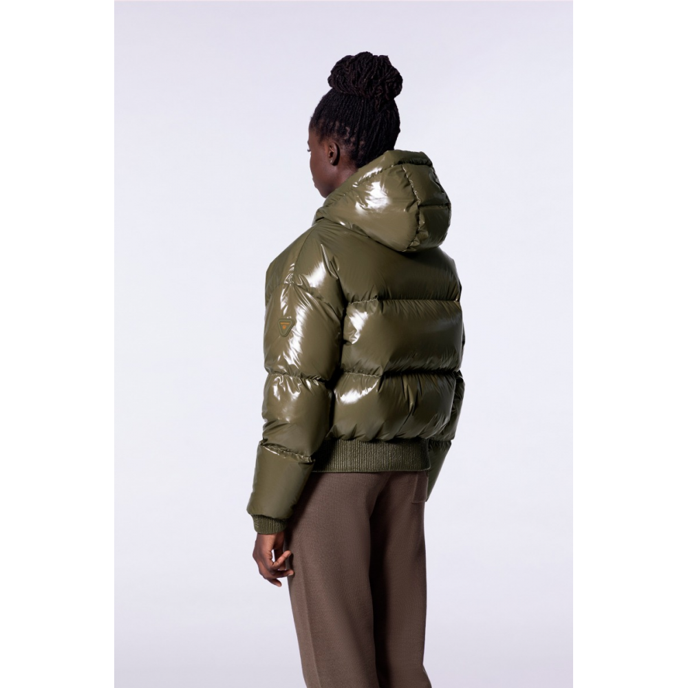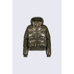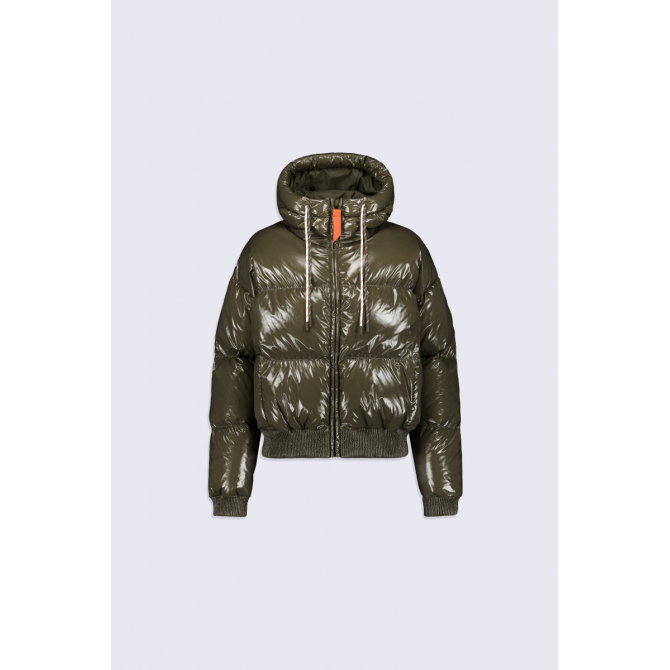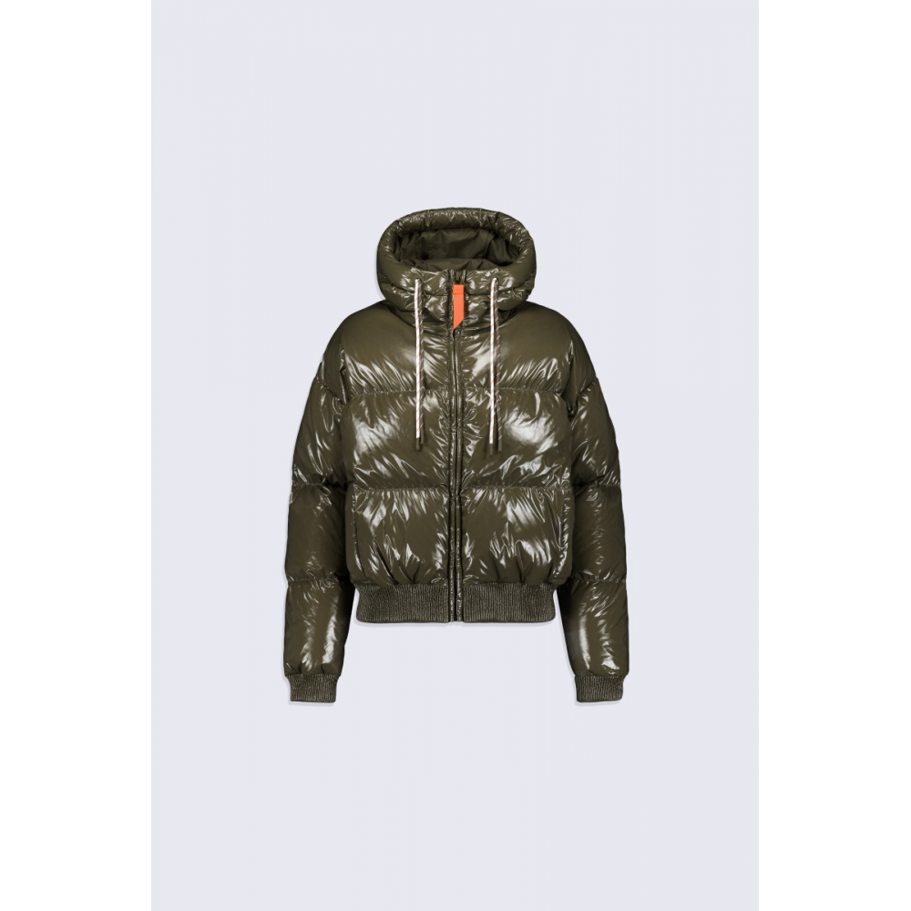 NINE EST UNE DOUDOUNE COURTE À CAPUCHE CONFECTIONNÉE EN MATIÈRE BRILLANTE. LES MANCHES TOMBANTES ET LE BAS DE VÊTEMENT SONT ÉLASTIQUÉS. LA CAPUCHE EST AJUSTABLE GRÂCE À UN CORDON TECHNIQUE. LOUVERTURE MILIEU DEVANT SE FAIT PAR UN ZIP EN PLASTIQUE INJECTÉ REHAUSSÉ DUNE TIRETTE CONTRASTÉE. DEUX POCHES SONT INSÉRÉES SUR LE DEVANT. LE PATCH EN SILICONE TON SUR TON ICONIQUE DE LA MARQUE EST APPOSÉ SUR LÉPAULE. 100% NYLON DOUBLURE : 100% NYLON REMPLISSAGE EN DUVET ET PLUMES DE CANARD BLANC 80/20