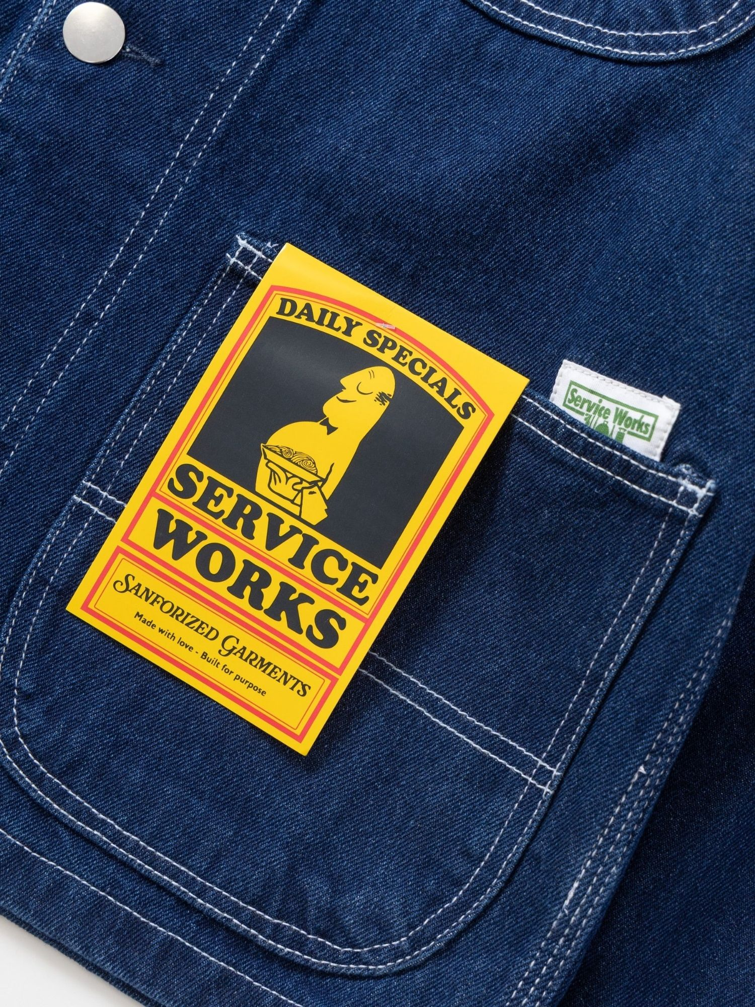 COMBINAISON EN DENIM 2.0 PAR SERVICE WORKS COUPE CLASSIQUE CONFECTIONNÉE EN DENIM DE COTON BIOLOGIQUE GOTS 12 OZ TRIPLE COUTURE, COUTURES CONTRASTÉES MANCHES RAGLAN 4 POCHES FERMETURE À 5 BOUTONS ÉTIQUETTE TISSÉE TABLEAU DES TAILLES EXPÉDITION VOUS AIMEREZ PEUT-ÊTRE AUSSI POPOVER EN DENIM SCRIPT - LAVAGE UNIQUE 102,95 COMBINAISON EN DENIM 2.0 - LAVAGE FONCÉ 127,95 CASQUETTE EN VELOURS CÔTELÉ SERVICE SCRIPT - BLEU MARINE 45,95 COMBINAISON 2.0 - NOIR