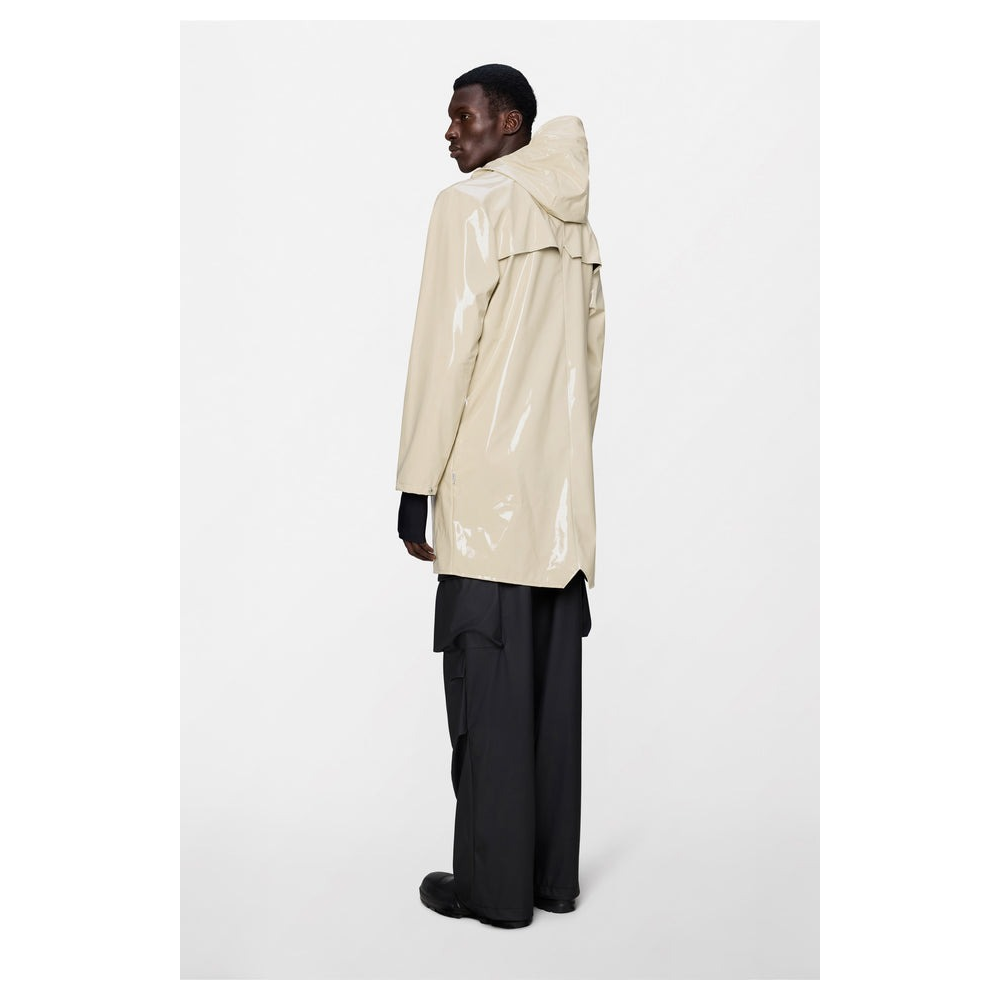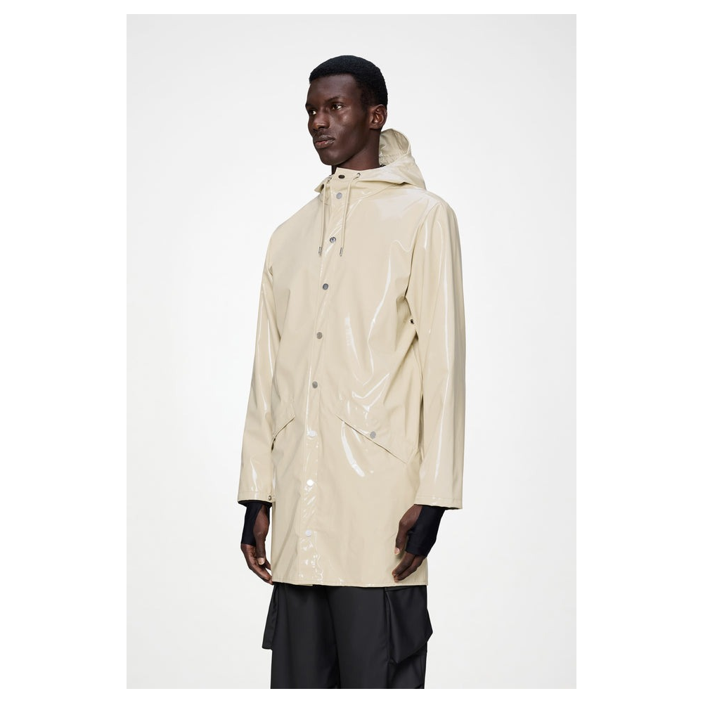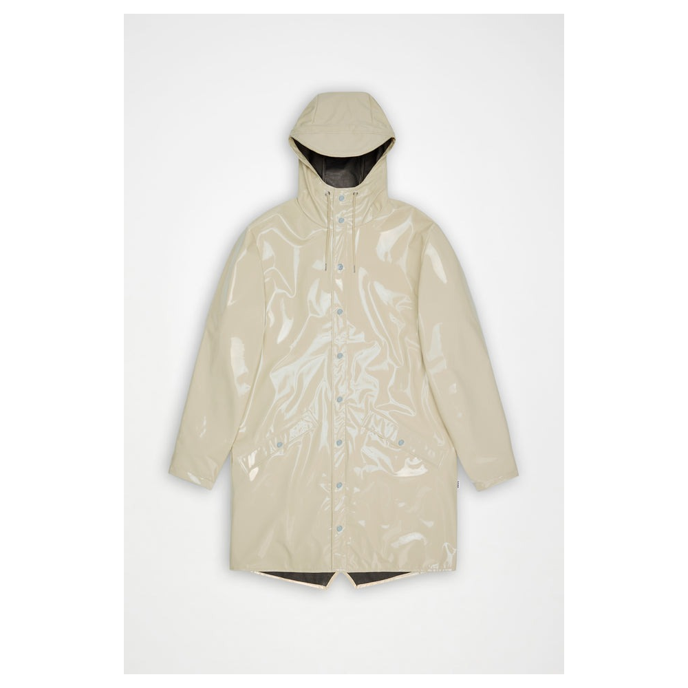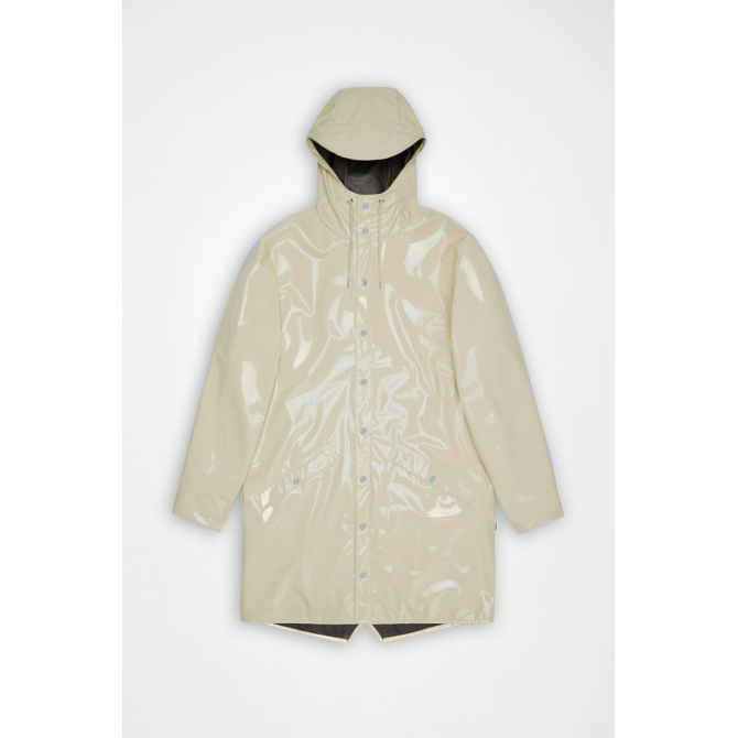 LONG JACKET EST UNE VESTE DE PLUIE UNISEXE ET MODERNE. SE DISTINGUE PAR UNE SILHOUETTE MINIMALISTE DANS UN DESIGN LONG. CETTE VESTE DE PLUIE EST UNE VERSION ALLONGÉE DE LA VESTE DE PLUIE CLASSIQUE RAINS. CE MODÈLE EST DOTÉ D'UNE PATTE DE BOUTONNAGE AVEC BOUTONS-PRESSION, D'UNE CAPUCHE AVEC CASQUETTE INTÉGRÉE ET DE DEUX POCHES LATÉRALES AVEC BOUTONS-PRESSION. LES MANCHES SONT TERMINÉES PAR DES BOUTONS-PRESSION QUI PERMETTENT DE LES AJUSTER POUR UNE COUPE PLUS OU MOINS SERRÉE.