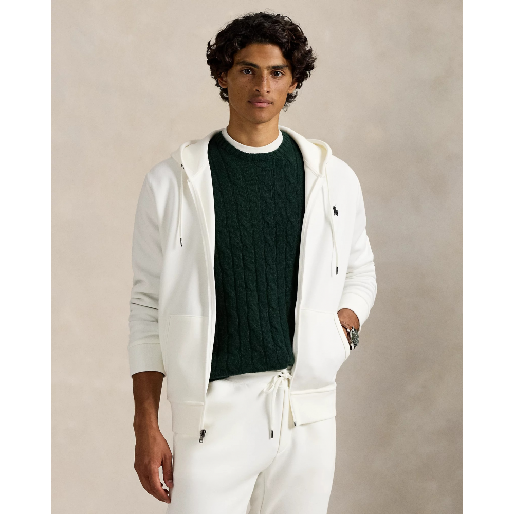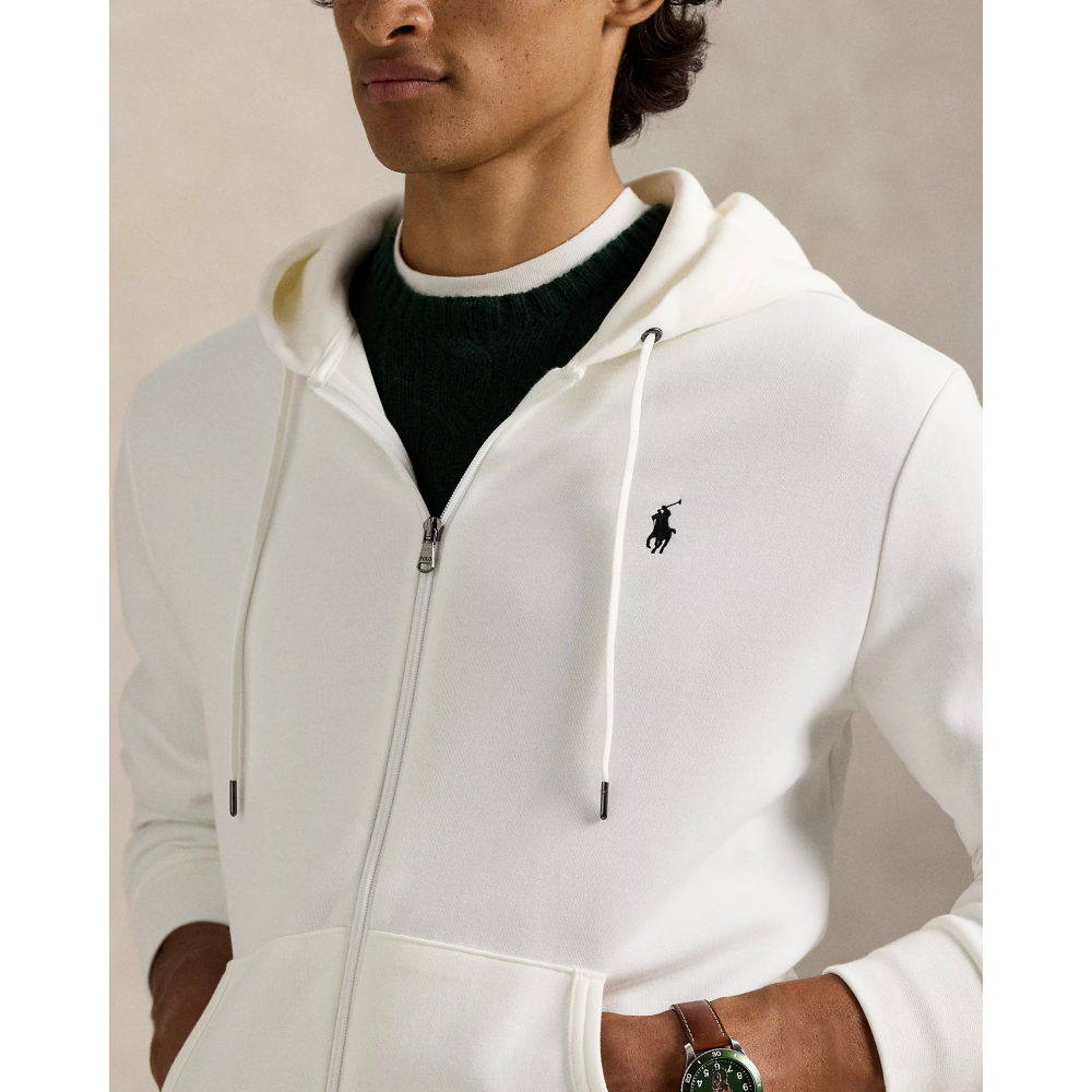 TAILLE M : LONGUEUR DE CORPS (AVANT ET ARRIÈRE) DE 68,5 CM, ÉPAULES DE 47 CM, TOUR DE POITRINE DE 113 CM ET LONGUEUR DE MANCHE DE 89 CM. LA LONGUEUR DE MANCHE EST CALCULÉE DEPUIS LE MILIEU DE LA NUQUE. CAPUCHE À CORDON DE SERRAGE. DEVANT ENTIÈREMENT ZIPPÉ. TIRETTE DE ZIP CRÉÉE EN EXCLUSIVITÉ AVEC UN LOGO « POLO ». MANCHES LONGUES AVEC POIGNETS CÔTELÉS. POCHE KANGOUROU FENDUE. OURLET CÔTELÉ. PONEY DISTINCTIF BRODÉ SUR LA POITRINE À GAUCHE.