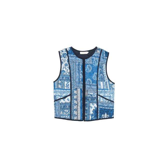 LA PETITE ETOILE - VAY LA VESTE VAY REVISITE LE SANS-MANCHES AVEC UN ESPRIT FOLK ET CONTEMPORAIN. ENTIÈREMENT CONFECTIONNÉE EN COTON, ELLE SÉDUIT PAR SON MATELASSAGE LÉGER ET SON MOTIF PATCHWORK SOULIGNÉ DE BIAIS CONTRASTÉS. SON ENCOLURE RONDE ET SES POCHES PLAQUÉES LUI CONFÈRENT UNE ALLURE DÉCONTRACTÉE, IDÉALE POUR APPORTER UNE TOUCHE DORIGINALITÉ À UNE SILHOUETTE SIMPLE. RETROUVEZ CET IMPRIMÉ ÉGALEMENT SUR LE TEDDY VAYLA. 100% COTON