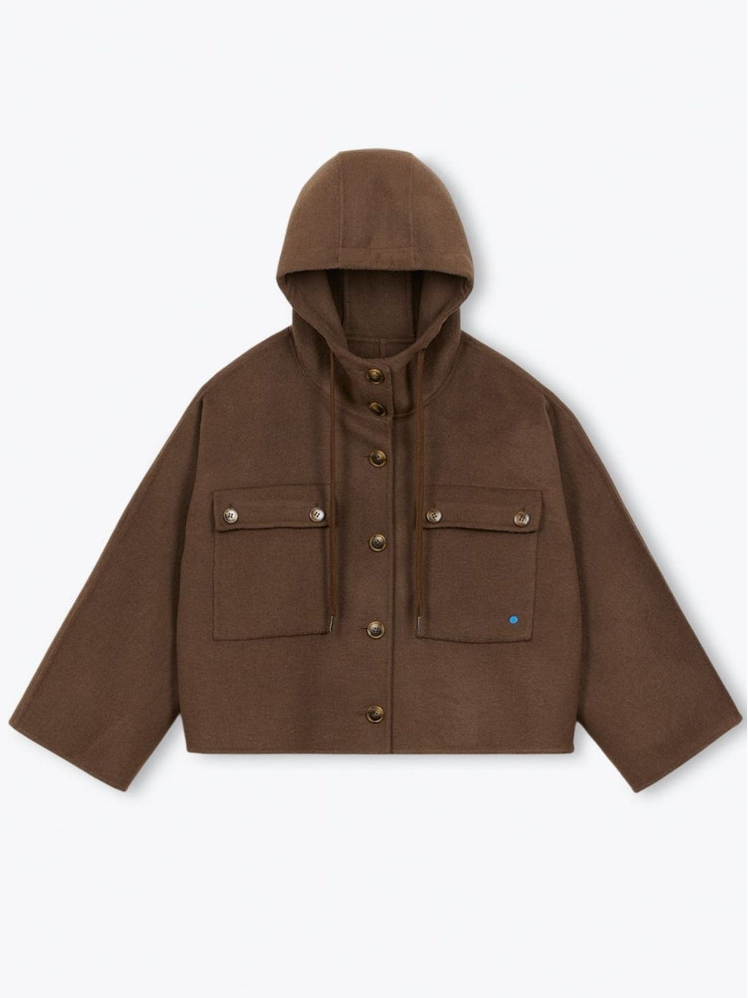 ARSENE ET LES PIPELETTES - MANTEAU TISSU EN DRAP DE LAINE. POCHES À RABATS BOUTONNÉS SUR LA POITRINE ET BRODERIE "POIS BLEU". CAPUCHE AVEC CORDON FANTAISIE. OUVERTURE AVEC BOUTONS AU DEVANT. ARIANE MESURE 1M78 ET PORTE UNE TAILLE S. 50% LAINE 50% POLYESTER TISSÉ