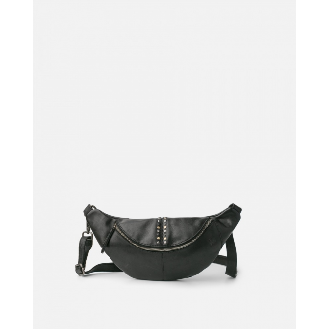 SAC BANANE EN CUIR DE VACHE LAVÉ. CLOUS DÉCORATIFS SUR LE DEVANT. BANDOULIÈRE RÉGLABLE ET AMOVIBLE À UNE EXTRÉMITÉ. FERMETURE ZIPPÉE. POCHES EXTÉRIEURES ET INTÉRIEURES. DOUBLURE EN COTON.