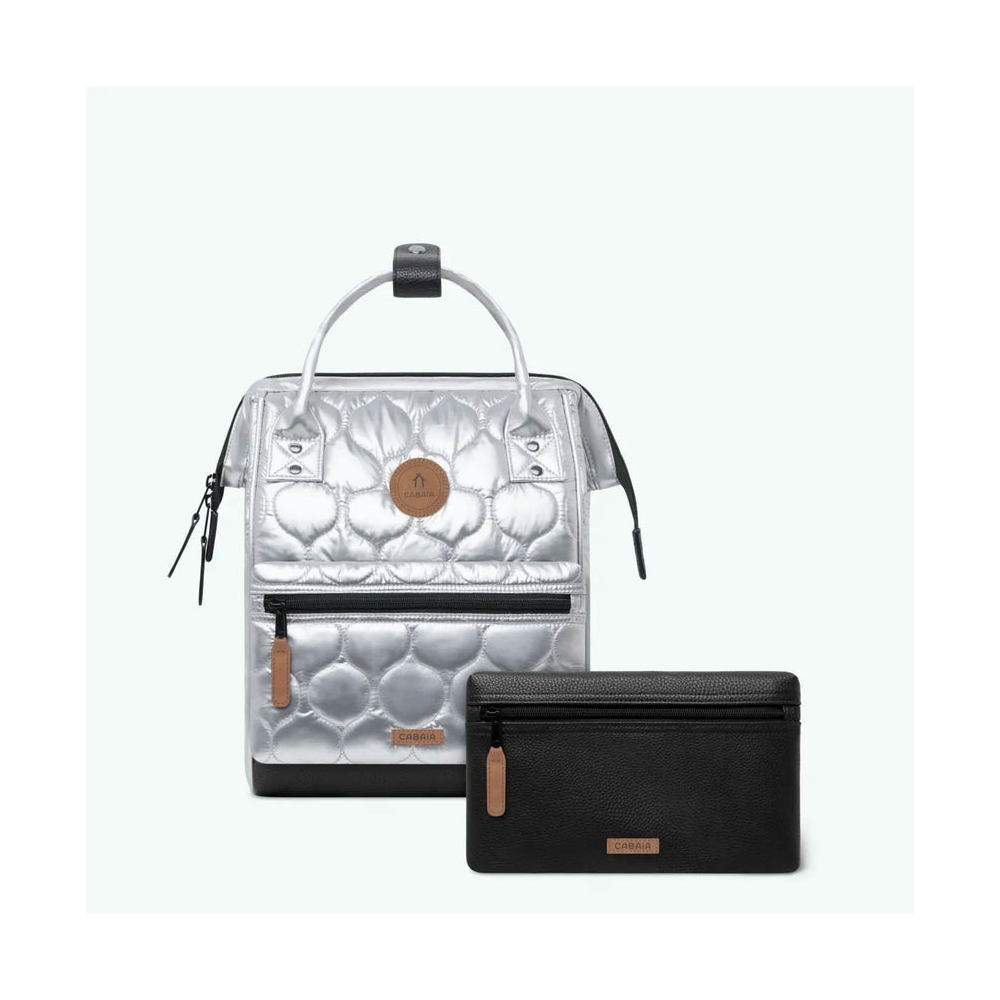 DIMENSIONS (10L) : 23CM X 32CM X 13CM CABAIA - CABAIA POIDS : 0,75KG CABAIA - CABAIA COMPARTIMENT ORDINATEUR : JUSQU'À 10 POUCES GARANTI À VIE OUVERTURE GRAND ANGLE SYSTÈME MOLLE POUR ATTACHER LES POCHETTES AVANT ET LATÉRALES VEGAN ET DÉPERLANT SANGLE ATTACHE VALISE BRETELLES REMBOURRÉES ET ANTI-TRANSPIRANTES CE SAC EST ACCOMPAGNÉ DE 2 POCHETTES INTERCHANGEABLES : ARGENTÉ (ASTANA) + NOIR (TARA MASJID).