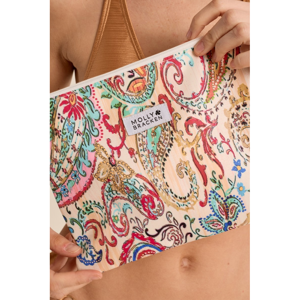 POCHETTE RECTANGULAIRE -FERMETURE PAR ZIP SUR TOUTE LA LONGUEUR -ANSE POUR POIGNET -LOGO MOLLY BRACKEN SUR LE DEVANT -LONGUEUR TOTALE 24CM (POUR UNE TAILLE UNIQUE)