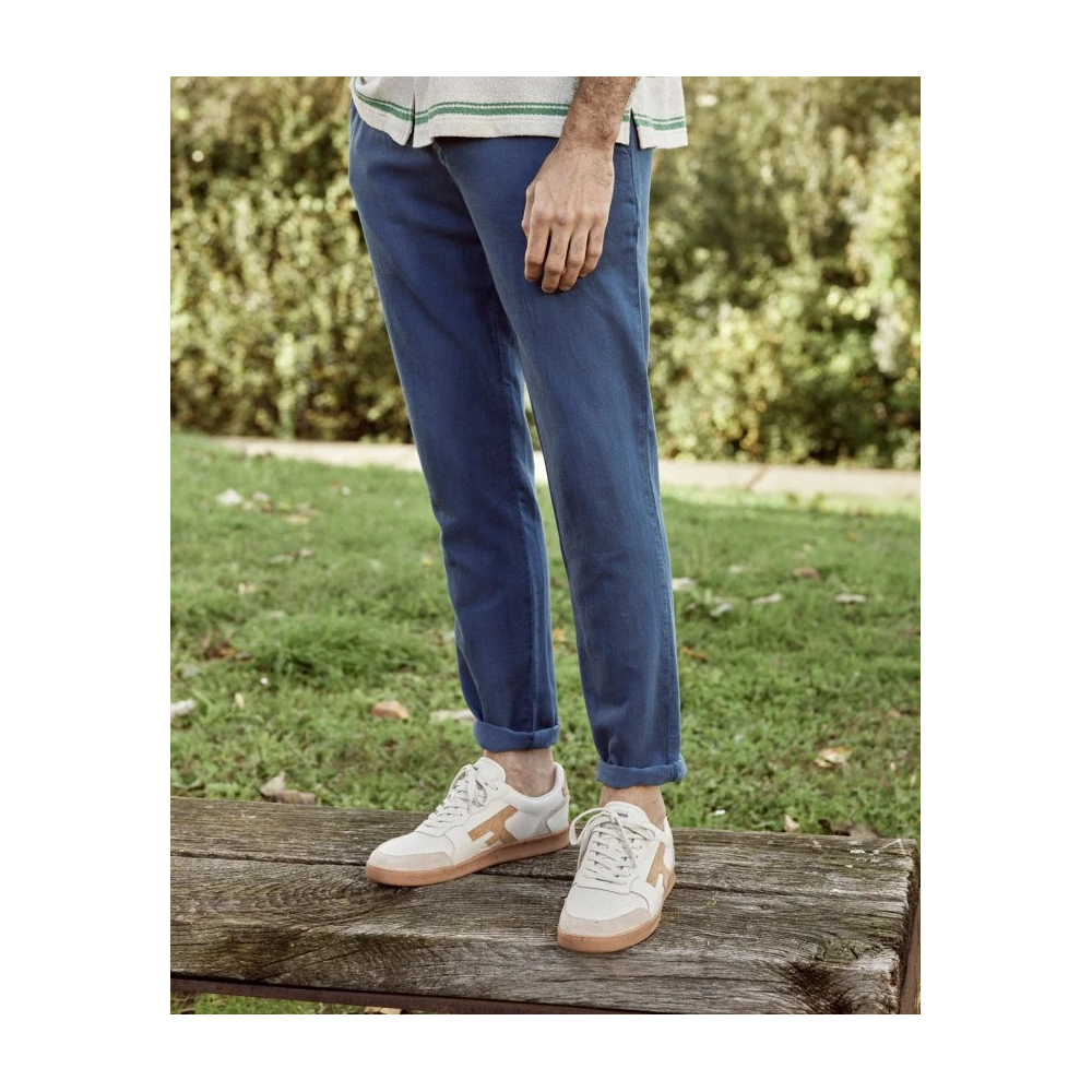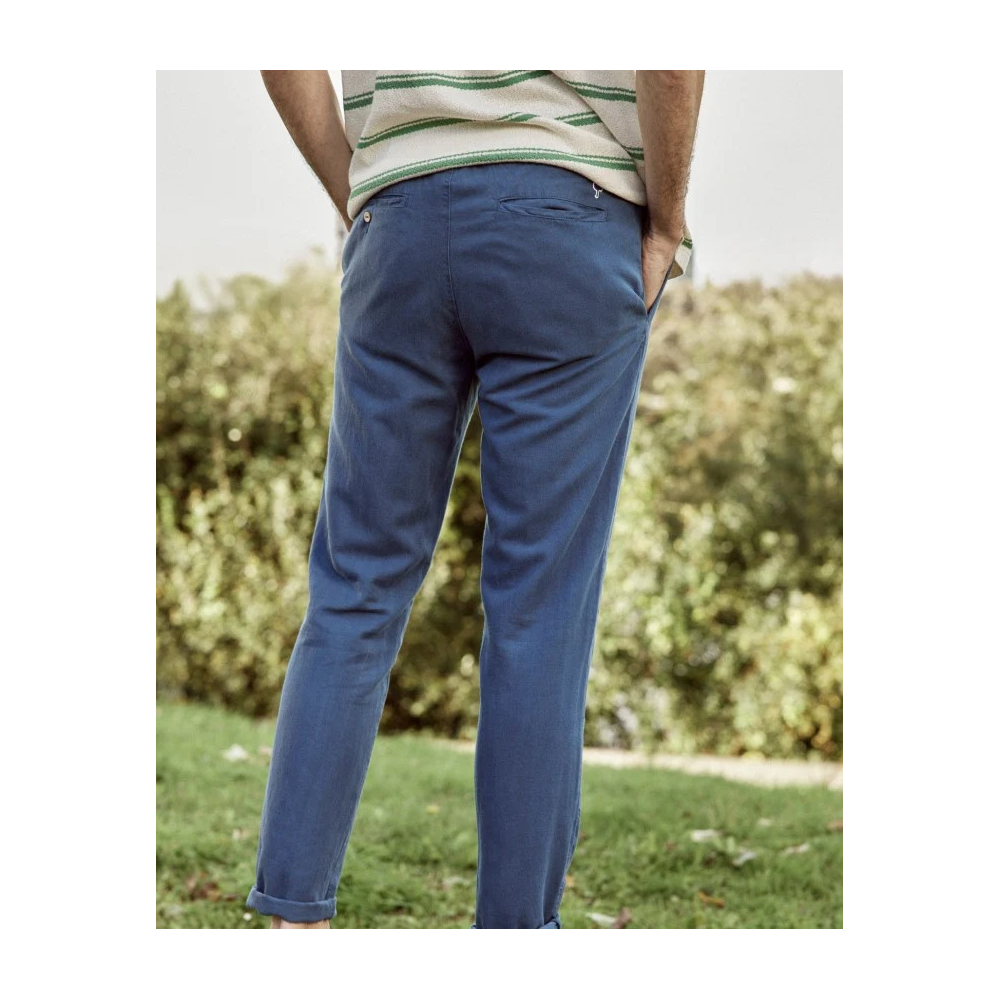 LE PANTALON BLEU CLAIR DREUILLE DE CHEZ FAGUO INCARNE PARFAITEMENT LÉQUILIBRE ENTRE ÉLÉGANCE ET CONFORT. INSPIRÉ DE LUNIVERS DU SPORTSWEAR, IL SE DISTINGUE PAR SA TAILLE ÉLASTIQUÉE AVEC CORDON DE SERRAGE INTÉRIEUR, GARANTISSANT UNE GRANDE LIBERTÉ DE MOUVEMENT ET UN AJUSTEMENT PARFAIT. 43% LYOCELL DONT 7% RECYCLÉ, 38% COTON DONT 10% RECYCLÉ,19% LIN DONT 11% RECYCLÉ