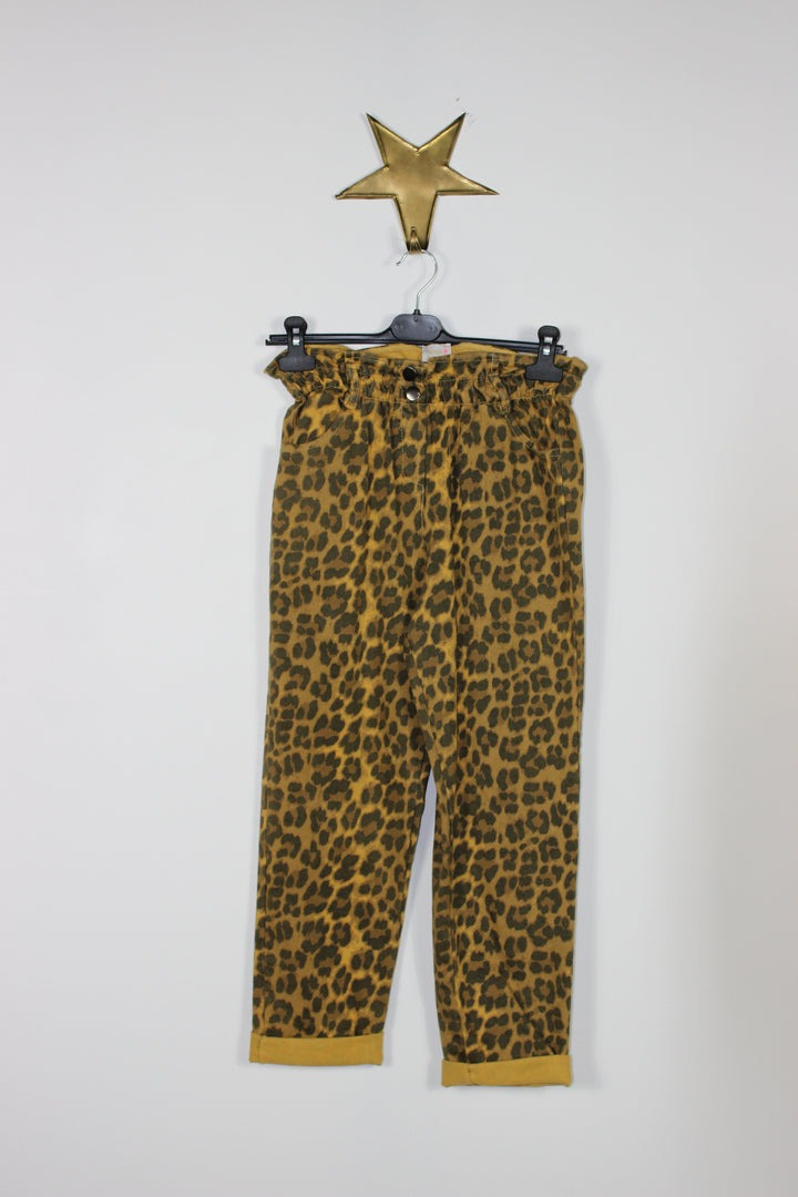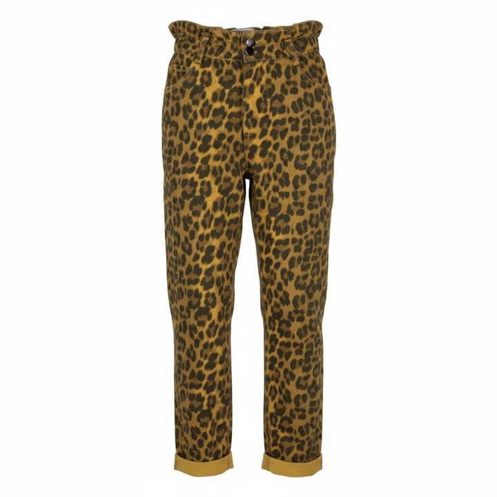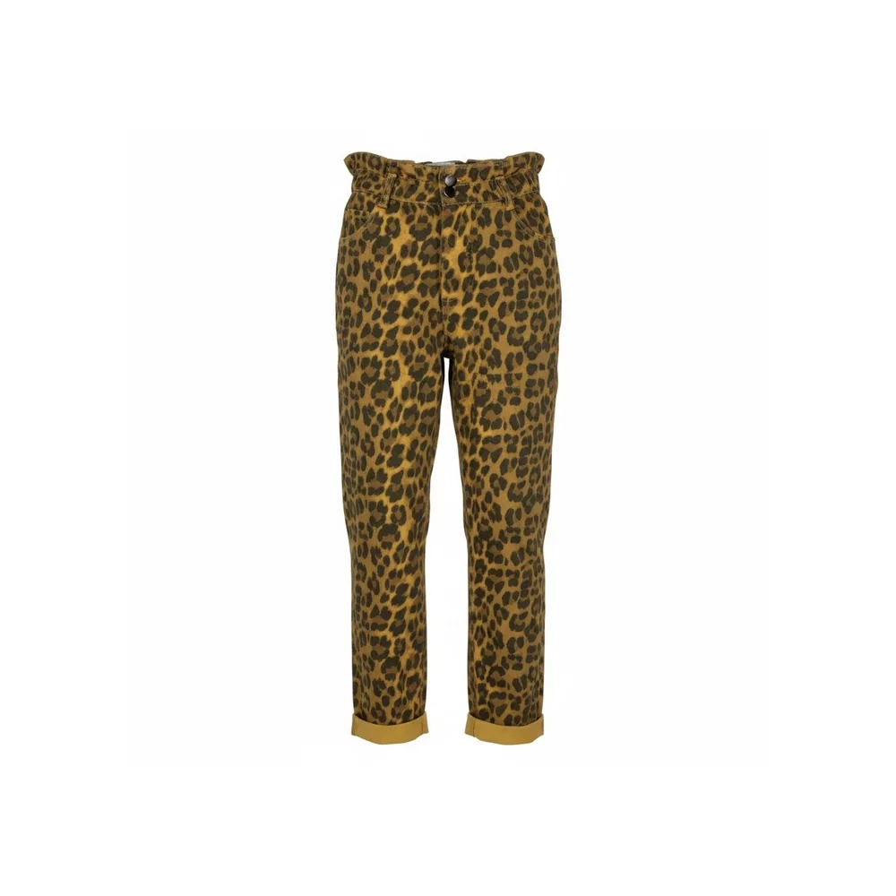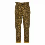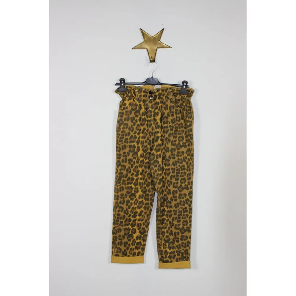 LE PANTALON LÉOPARD ZOÉ TAILLE ÉLASTIQUÉE DEUX POCHES À L'AVANT BOUTONS PRESSIONS DÉCORATIFS CONFECTIONNÉ EN ITALIE COMPOSITION : 98% COTON, 2% ÉLASTHANNE LE MANNEQUIN MESURE 1M63 ET PORTE UN MODÈLE TAILLE S.