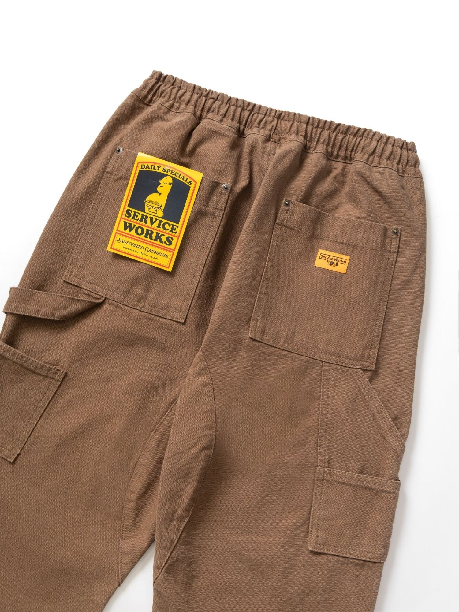 PANTALON UTILITY CHEF DE SERVICE WORKS COUPE AMPLE, JAMBES DROITES TOILE DE COTON BIOLOGIQUE GOTS 12 OZ TAILLE AJUSTABLE AVEC CORDON DE SERRAGE POCHES AVANT ET ARRIÈRE