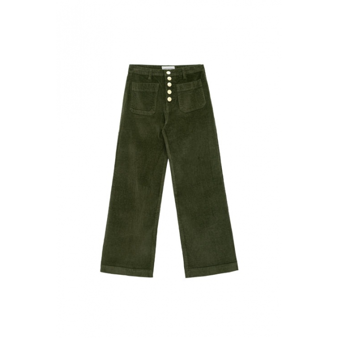 ATLANTA, UN PANTALON EN VELOURS KAKI QUI ALLONGE LA SILHOUETTE ET APPORTE UNE TOUCHE RÉTRO ÉLÉGANTE À VOS LOOKS.