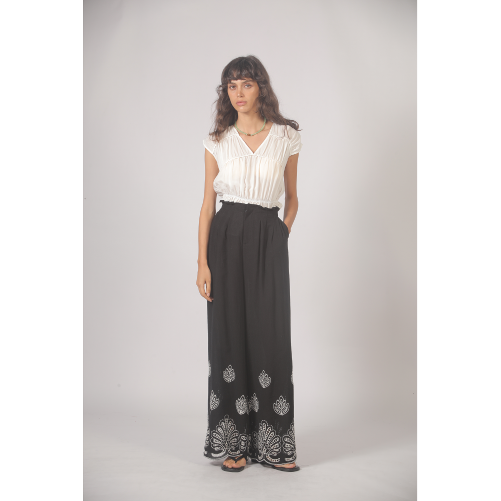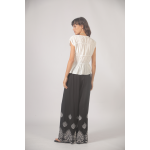 THE KORNER - PANTS PANTALON FLUIDE NOIR AVEC BRODURES BLANCHES