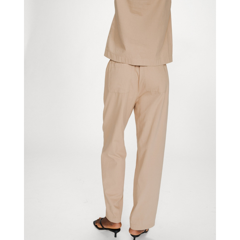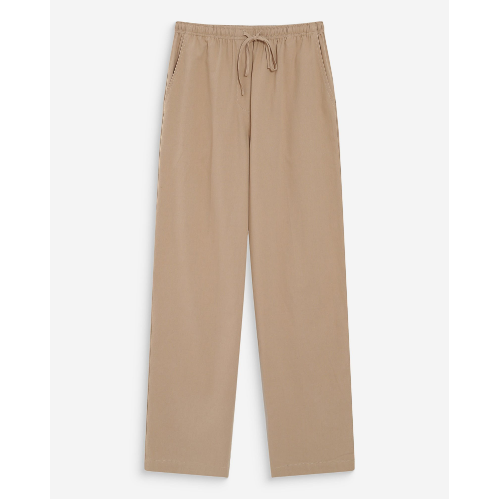- PANTALON LONG EN 100 % COTON - COUPE DROITE - TAILLE MI-HAUTE - TAILLE ÉLASTIQUÉE AVEC CORDON DE SERRAGE - POCHES ITALIENNES À LAVANT - POCHES PLAQUÉES AU DOS - FAUSSE BRAGUETTE