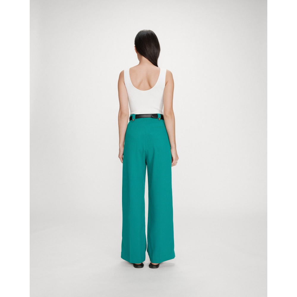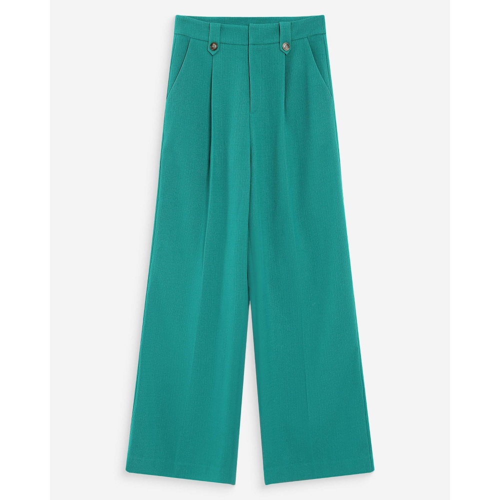 - PANTALON DE TAILLEUR - COUPE DROITE, JAMBE LARGE - TAILLE MI-HAUTE - PASSANTS AVEC BOUTONS DÉCORATIFS - PLIS MARQUÉS SUR LE DEVANT - FERMETURE ZIPPÉE AVEC BOUTONS EFFET CORNE GRAVÉS G&M - POCHES ITALIENNES DEVANT - FAUSSES POCHES PASSEPOILÉES AU DOS