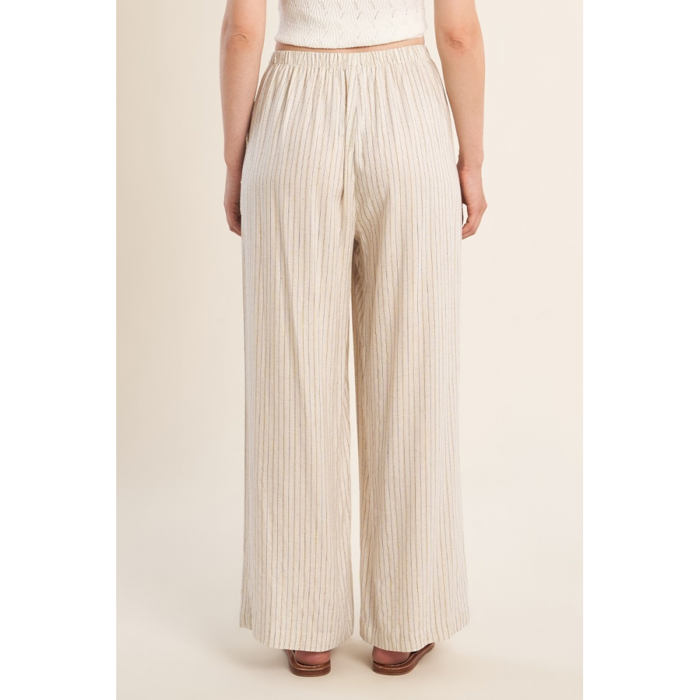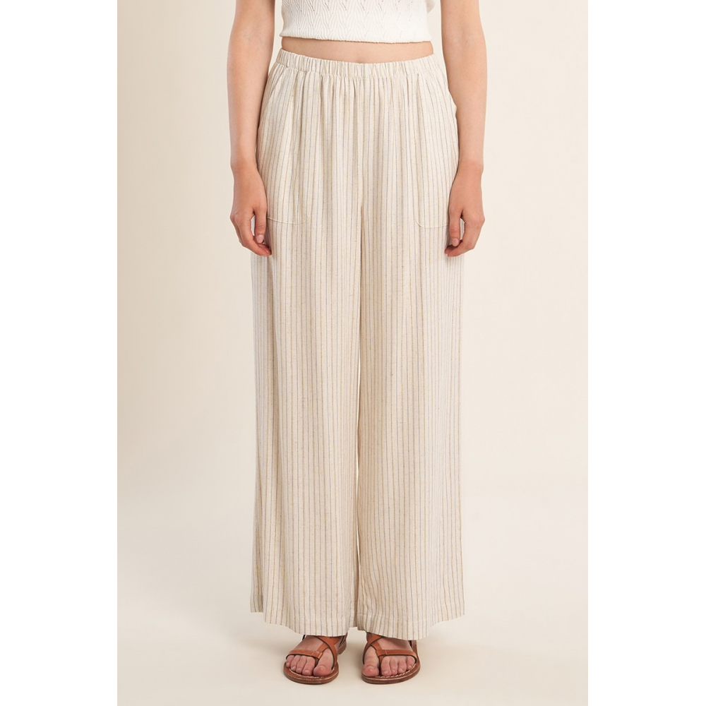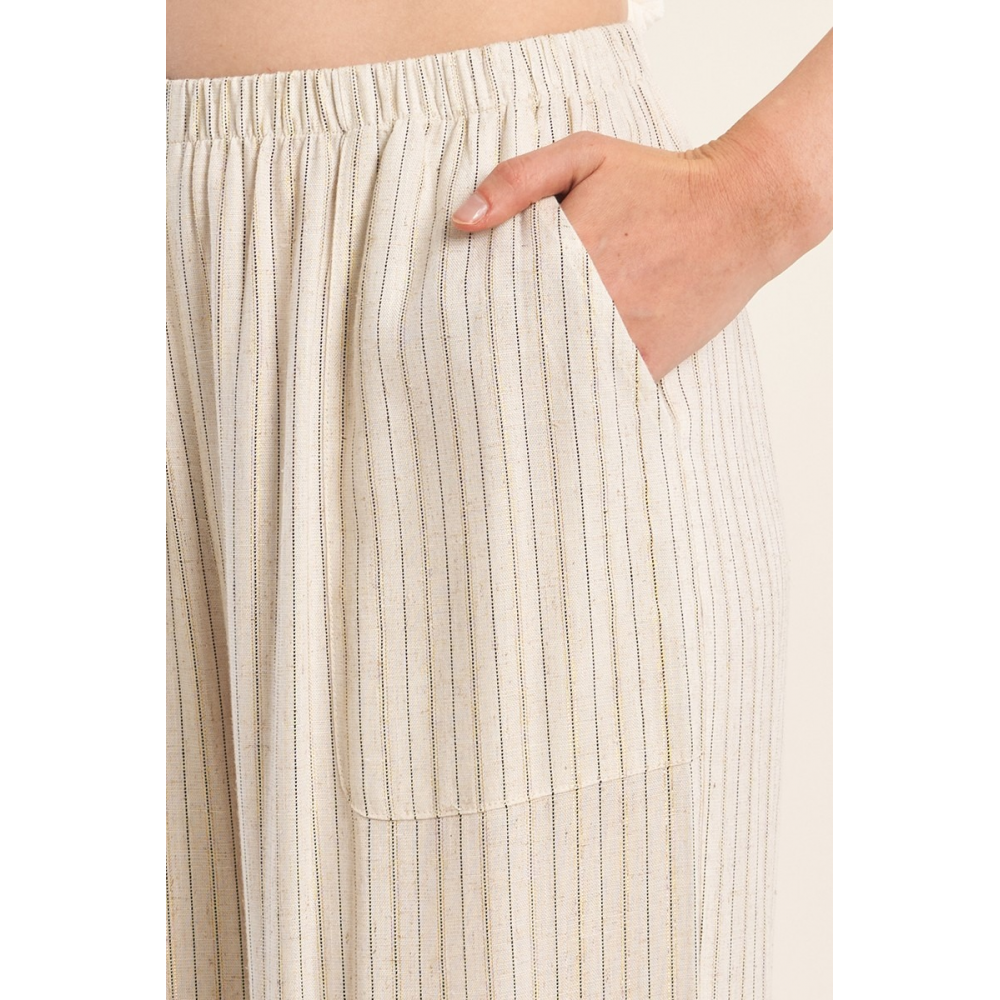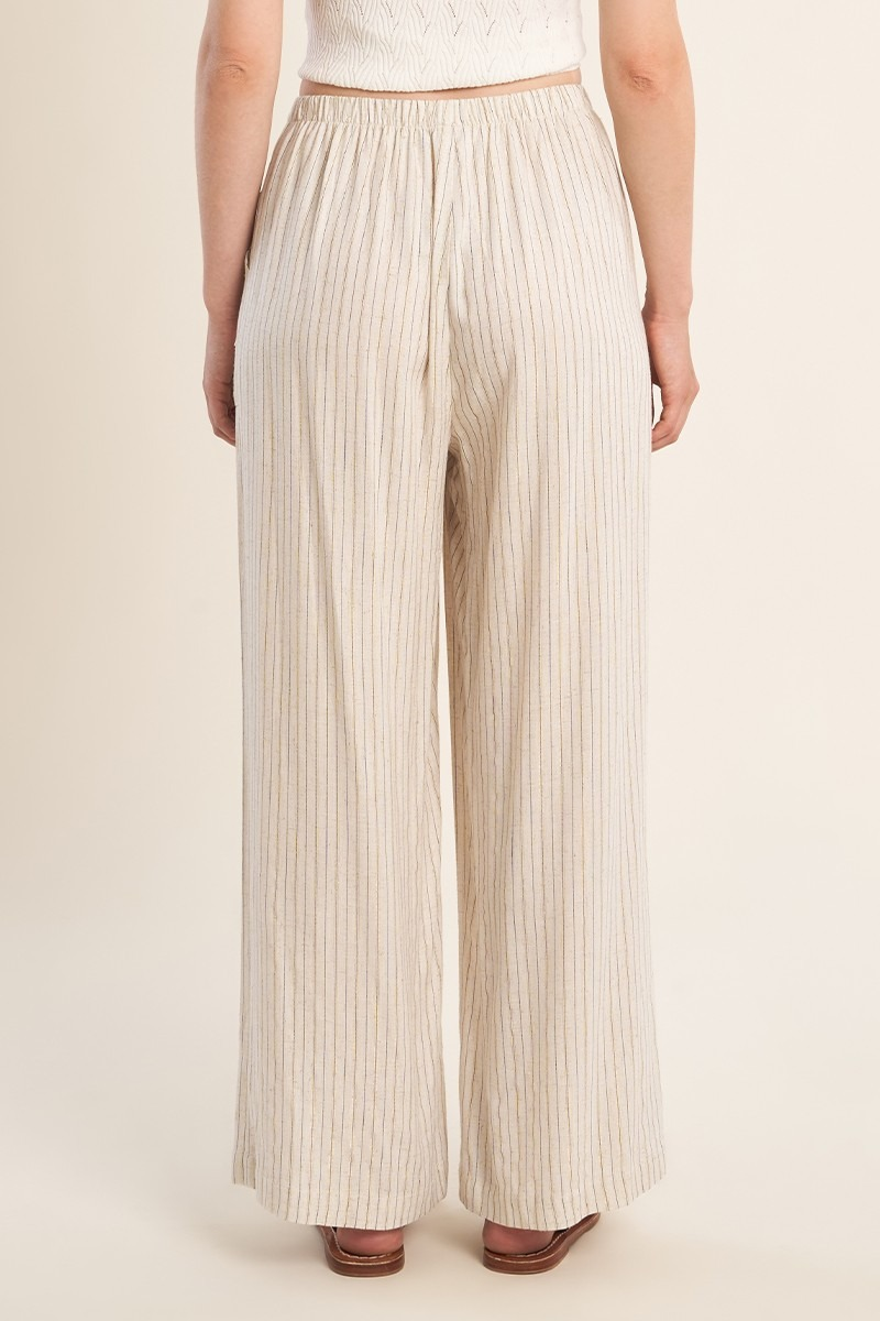 PANTALON CASUAL, RAYÉ -TAILLE HAUTE, ÉLASTIQUÉE -POCHES PLAQUÉES SUR LES CÔTÉS -COUPE LARGE -LONGUEUR DEPUIS LE CÔTÉ 105CM POUR UNE TAILLE S