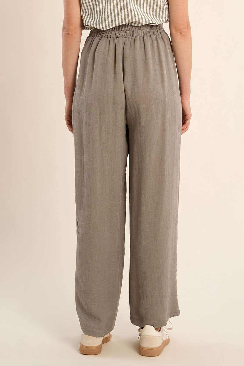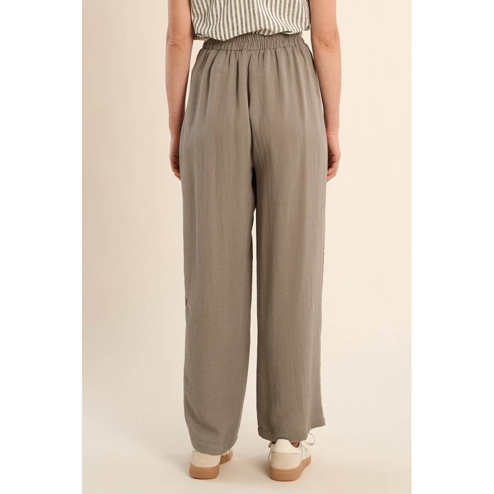 PANTALON TAILLE HAUTE, ÉVASÉ -TAILLE ÉLASTIQUÉE -POCHES PLAQUÉES SUR LES CÔTÉS -LONGUEUR DEPUIS LE CÔTÉ 103CM POUR UNE TAILLE S