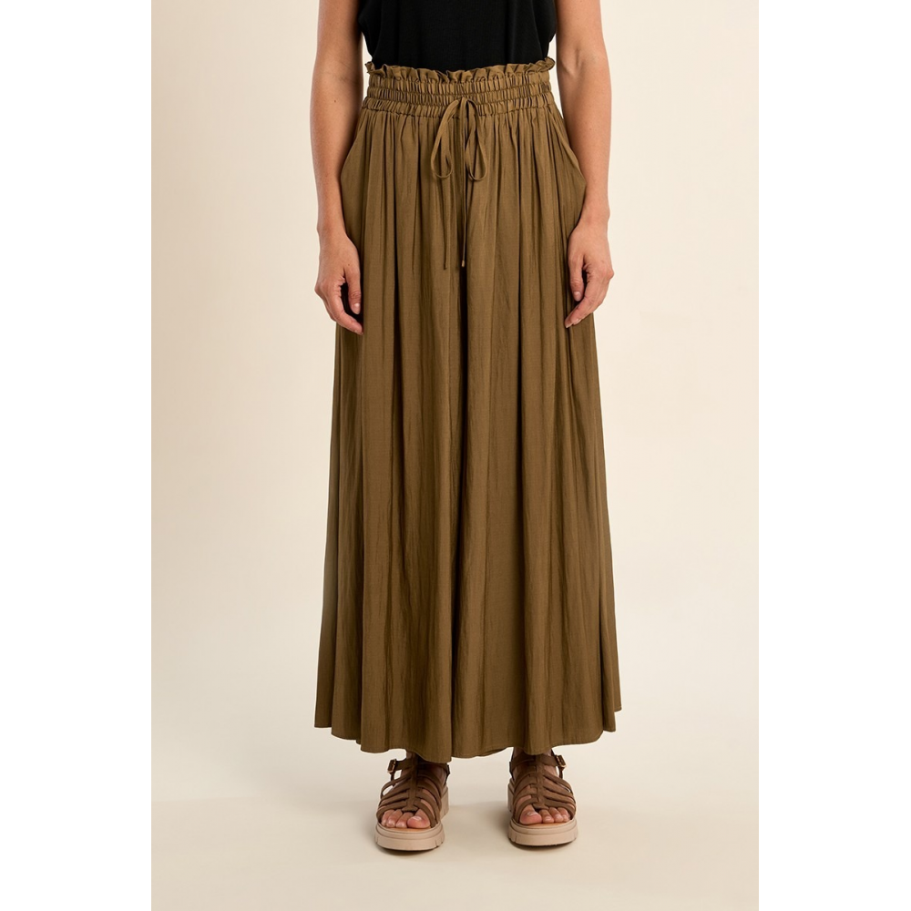 MOLLY BRACKEN - PANTS PANTALON LARGE, FLUIDE TAILLE HAUTE, ÉLASTIQUÉE CORDONS DÉCORATIFS LONGUEUR DEPUIS LE CÔTÉ 100CM POUR UNE TAILLE S
