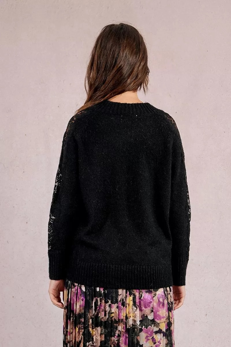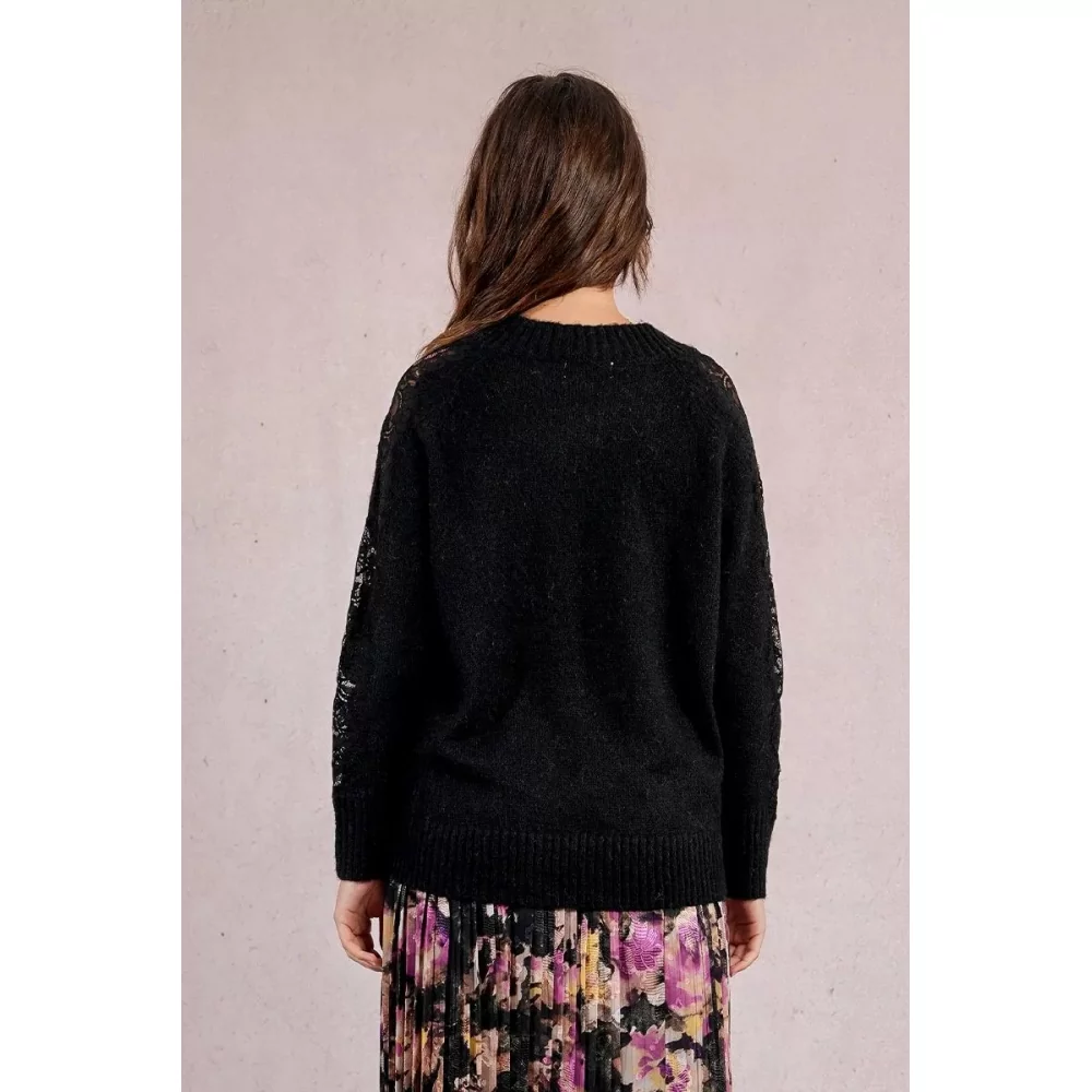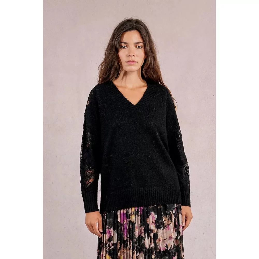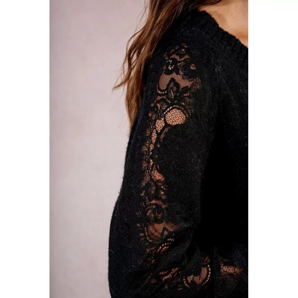 MOLLY BRACKEN - LADIES KNITTED SWEATER -PULL EN MAILLE -MANCHES LONGUES AJOURÉES AVEC INSERT DE DENTELLE -LARGE ENCOLURE V -COUPE DROITE -FINITION CÔTELÉE MATIÈRE PRINCIPALE :60 % POLYESTER RECYCLÉ 30 % POLYAMIDE 10 % LAINE
