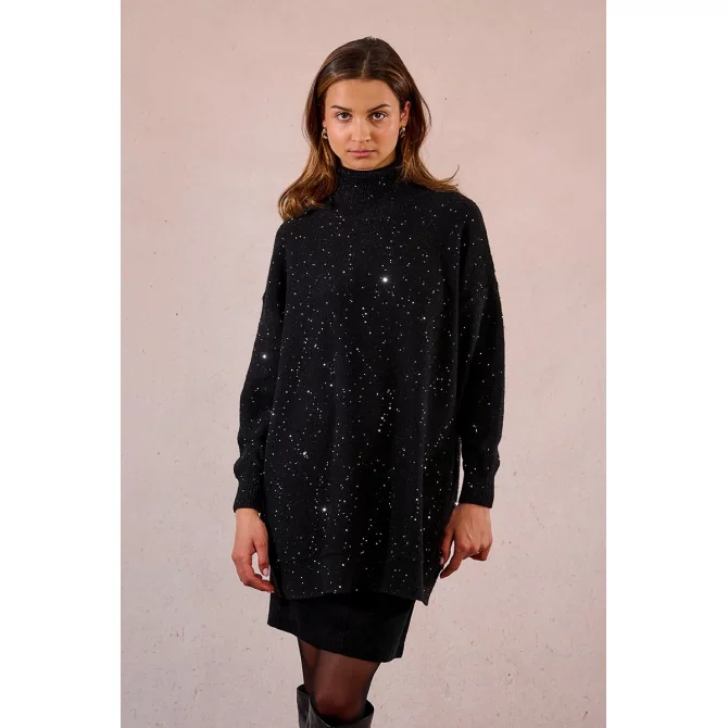MOLLY BRACKEN - LADIES KNITTED SWEATER -PULL OVERSIZE EN MAILLE, PARSEMÉ DE SEQUINS -EMMANCHURES BASSES -MANCHES LONGUES -COL ROULÉ -COUPE LONGUE ET DROITE -FINITION CÔTELÉE MATIÈRE PRINCIPALE :57 % ACRYLIQUE 40 % POLYESTER 3 % ÉLASTHANNE