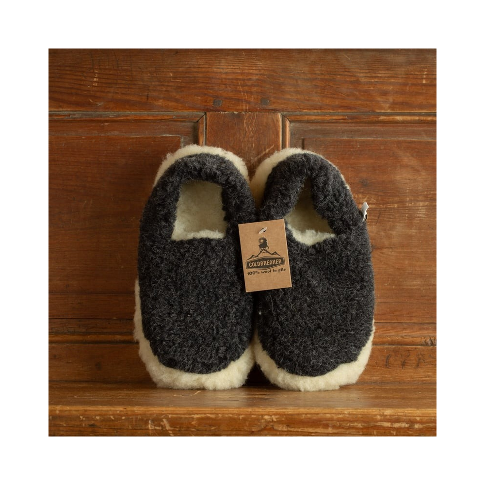 CHAUSSONS COLDBREAKER SIBERIAN SLIPPERS BLACK MATIÈRE : 100 % LAINE IRLANDAISE (YOKO WOOL) COULEUR : BLACK POINTURE : DU 37 AU 46 VELOURS DE LAINE BOUCLÉ SEMELLE ANTIDÉRAPANTE UNISEXE FABRIQUÉS EN POLOGNE TOUT COMME LES GILETS SANS MANCHES DE CHEZ COLDBREAKER, LES CHAUSSONS SIBERIAN SONT RÉALISÉS EN VELOURS DE LAINE BOUCLÉ IRLANDAISE PROVENANT DE CHEZ YOKO WOOL. POUR CET HIVER, COLDBREAKER PROPOSE UNE LARGE GAMME DE CHAUSSONS COLORÉS ET CHAUDS. LÉGERS ET SOUPLES, DOTÉS D'UNE SEMELLE ANTIDÉRAPANTE, ILS SONT CONÇUS POUR UNE UTILISATION EN INTÉRIEUR.