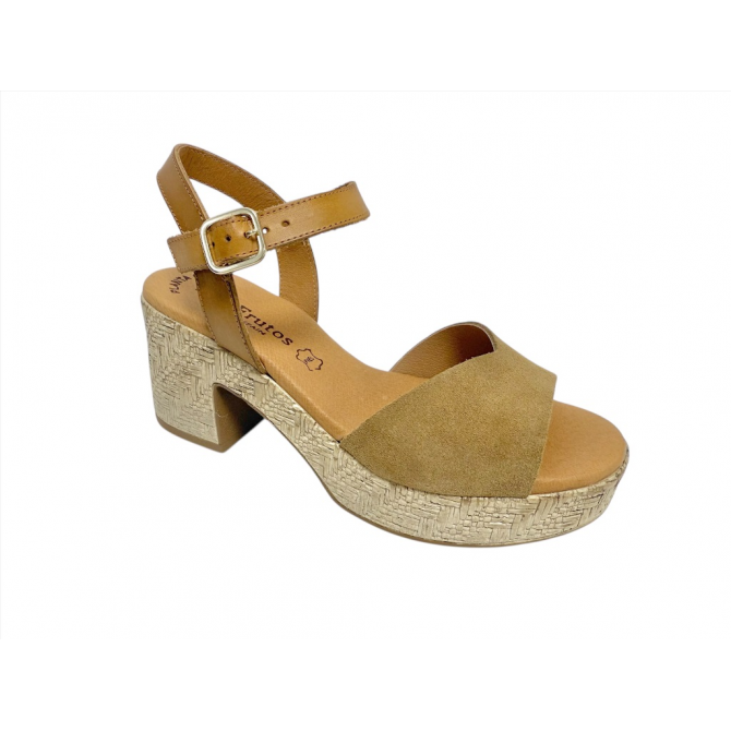 Composition TIGE : CUIR SUÉDÉ DOUBLURE : CUIR SEMELLE INTÉRIEURE : CUIR (GEL) SEMELLE EXTÉRIEURE : SYNTHÉTIQUE TALON : BLOC AVEC PLATEFORME FABRICATION : ESPAGNE – EVA FRUTOS