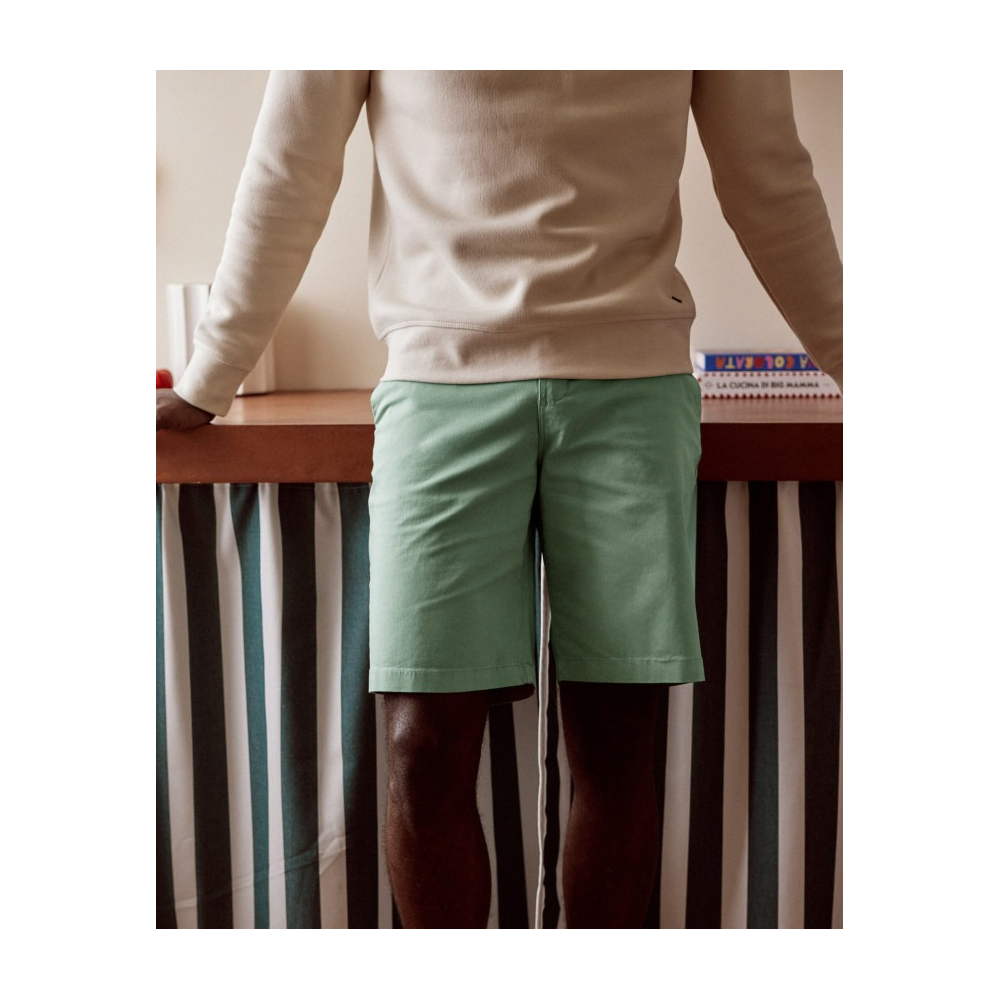 FAGUO - SAULIEU SHORT WOVEN BERMUDA HOMME VERT CLAIR COUPE DROITE ET UNE TAILLE LÉGÈREMENT HAUTE