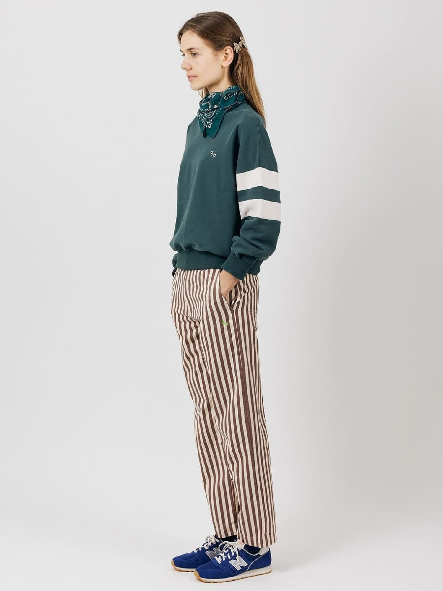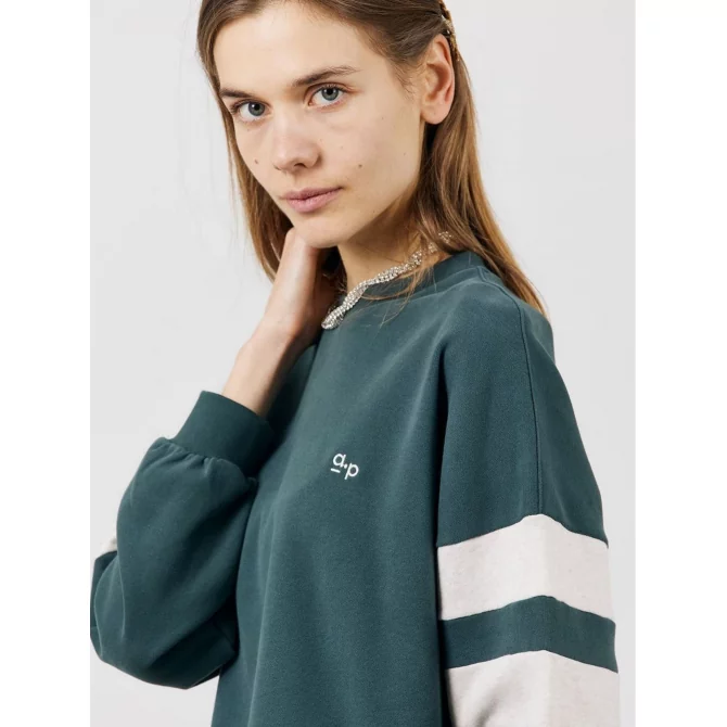 ARSENE ET LES PIPELETTES - SWEAT A BANDES MOLLETON EN COTON BIO ET BROSSÉ. COL ROND ET COUPE LOOSE. MANCHES LONGUES. BANDES CONTRASTÉES AUX BRAS. FINITION BORD CÔTE AU COL, POIGNETS ET BAS DU CORPS. THÉRÈSE MESURE 1M78 ET PORTE LE SWEAT COBALT DANS TAILLE S 100% COTON BIOLOGIQUE TRICOTÉ