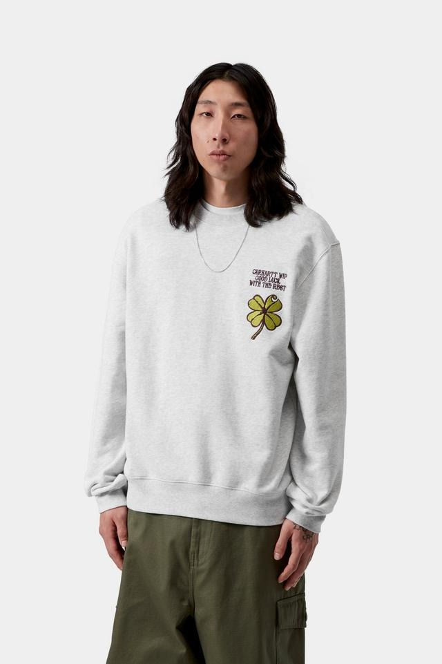 LE SWEAT-SHIRT 'CLOVER' EST CONFECTIONNÉ EN COTON ÉPAIS QUI N'A PAS ÉTÉ BROSSÉ POUR CONSERVER SON RELIEF. DE COUPE LOOSE, IL AFFICHE UNE BRODERIE GRAPHIQUE SUR LA POITRINE.