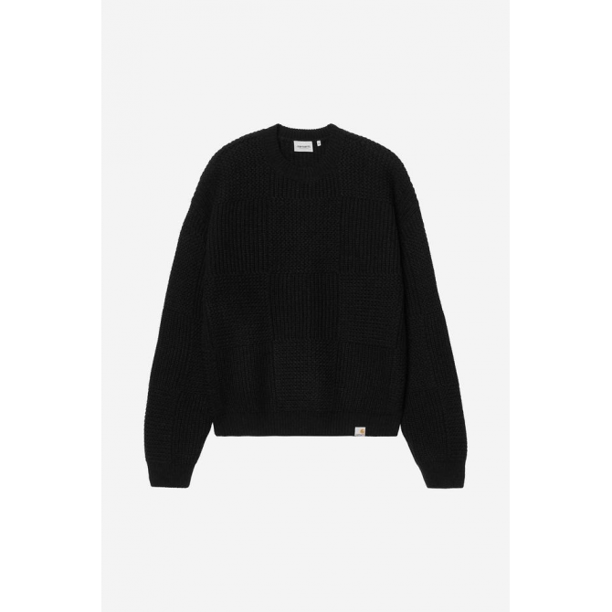 LE SWEATER À DAMIER TON SUR TON 'BISHOP' EST TRICOTÉ À PARTIR D'UNE MAILLE EN LAINE. LE SQUARE LABEL EST COUSU SUR L'OURLET.